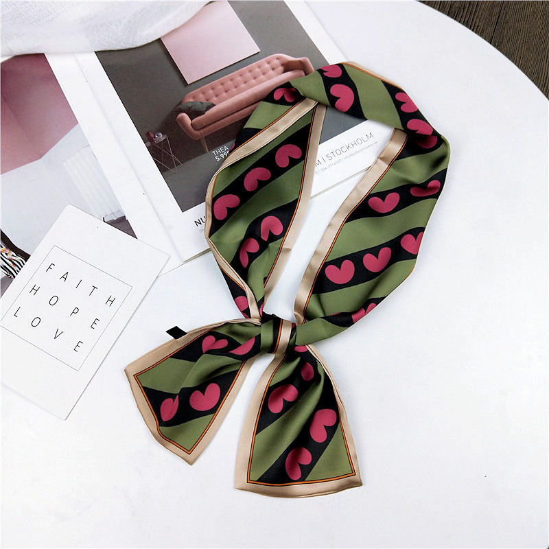 양면 인쇄 실크 스카프 한국식 플랫 코너 하트 타이 헤어 벨트 타이 백 핸들 셔츠 스카프 장식 리본 빈티지 매칭