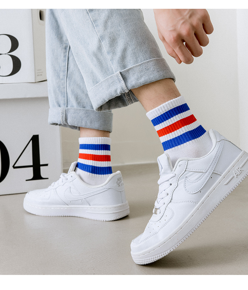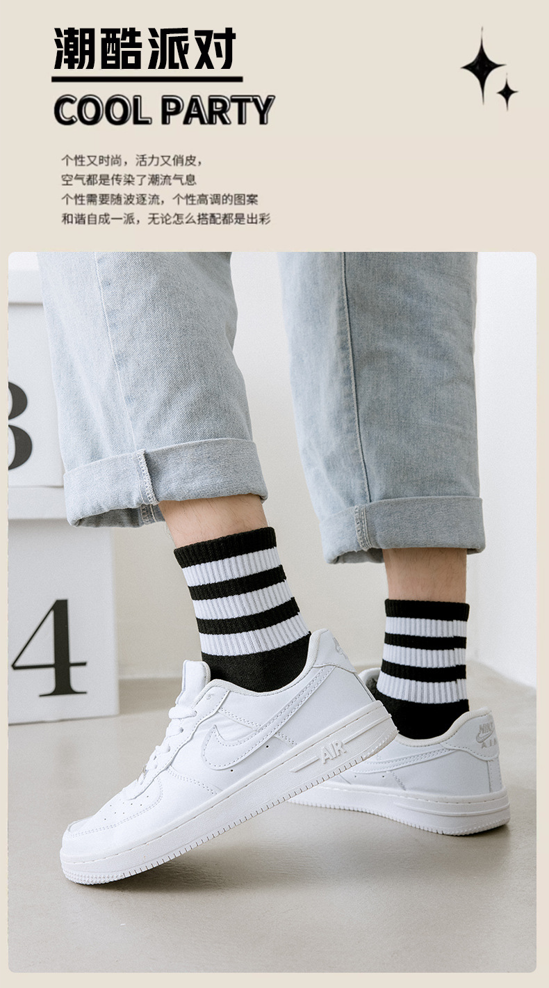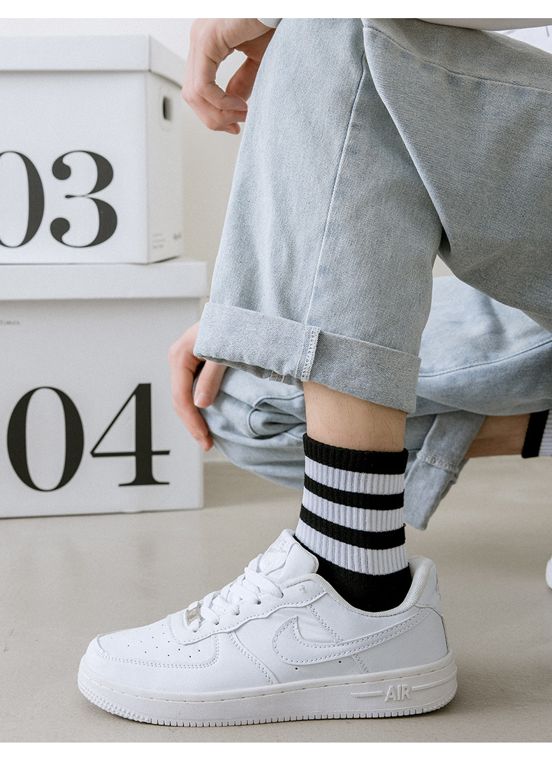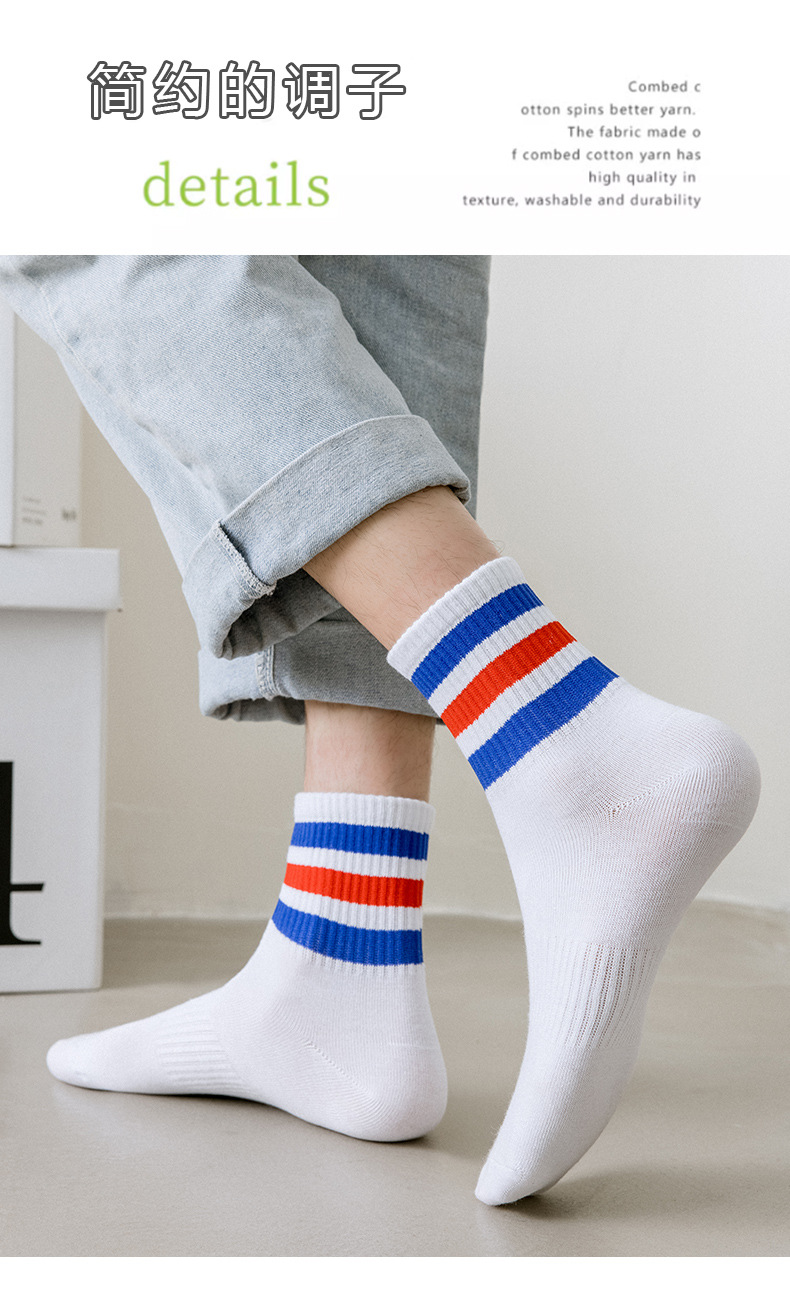 주지 양말 줄무늬 양말 면화 스포츠 남성 가을 및 겨울 탈취제 땀 흡수성 통기성 대학 스타일 한국 스타일스토어 가기