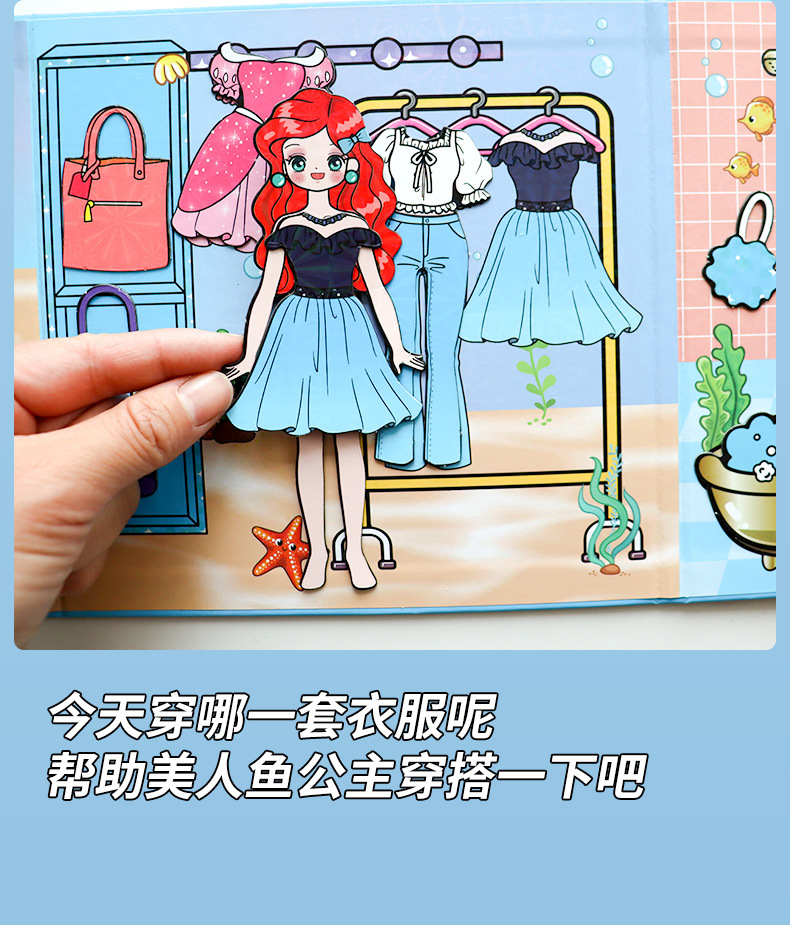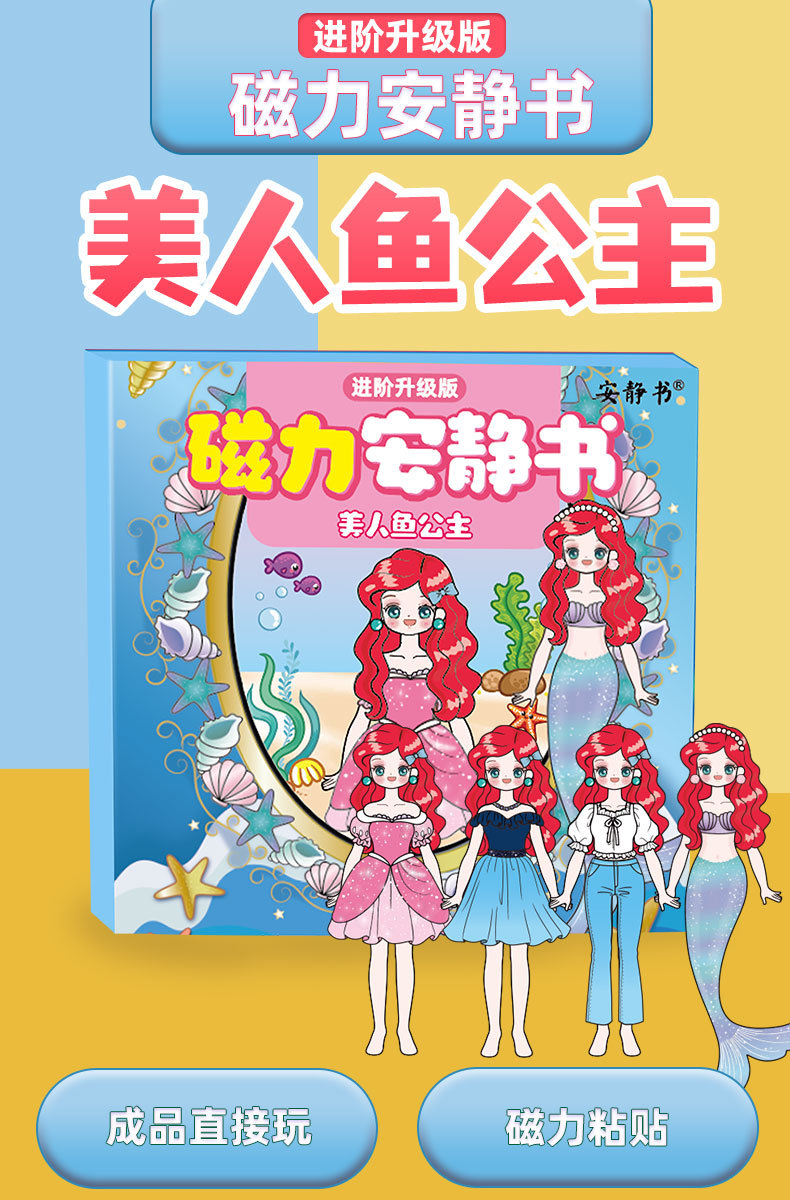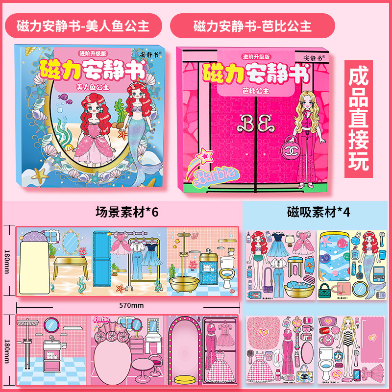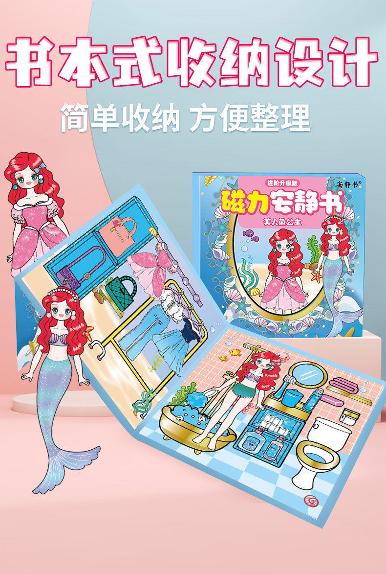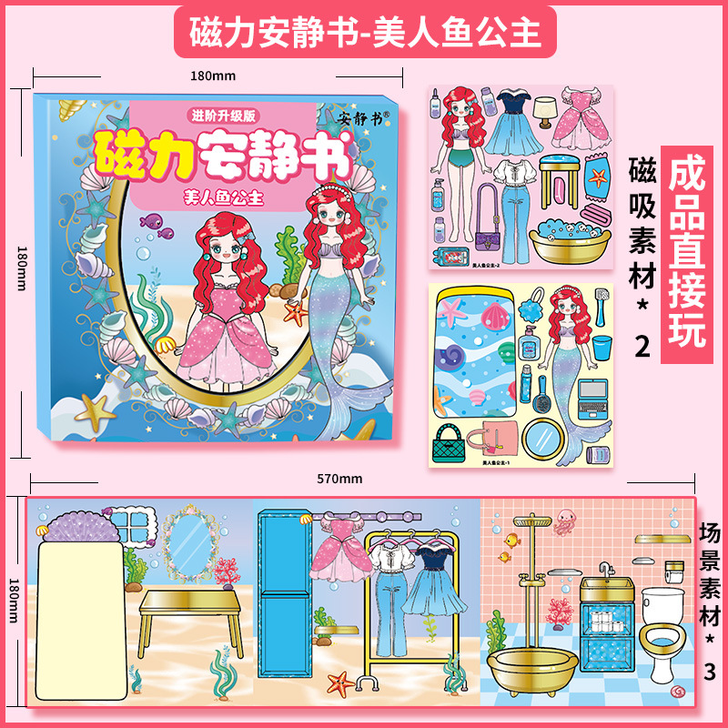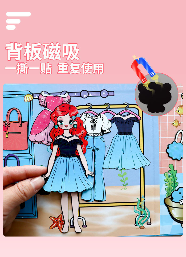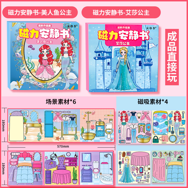 자기 인어 공주 조용한 책 원피스 업 엘사 소년과 소녀 자기 스티커 강한 자기 붙여 넣기 장난감 선물 DIY스토어 가기