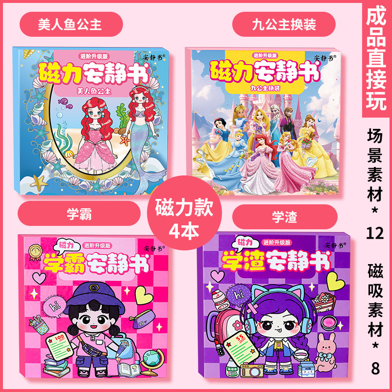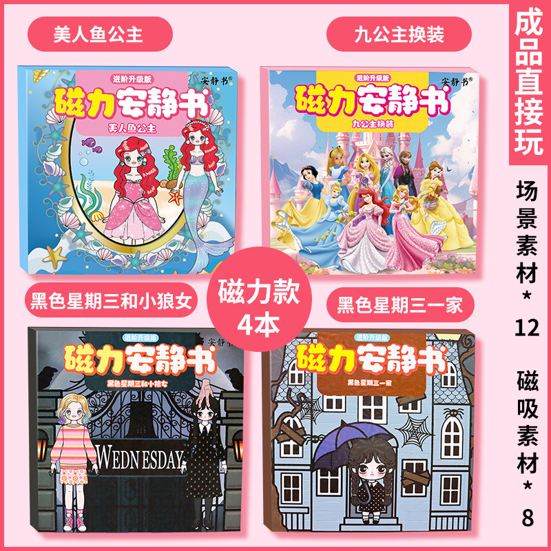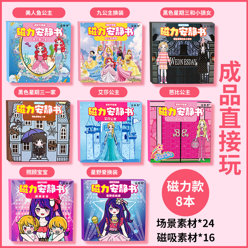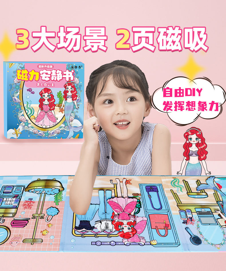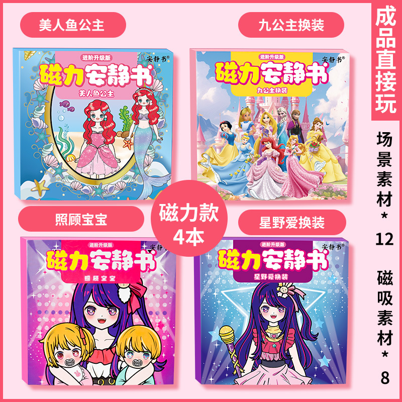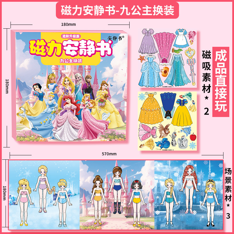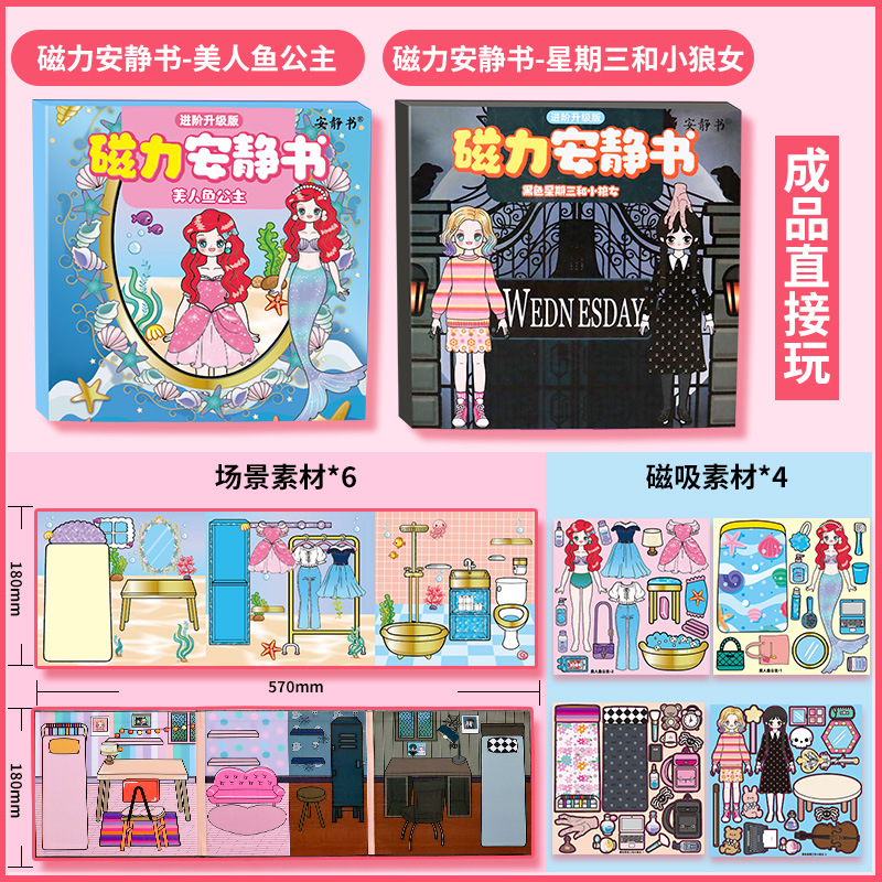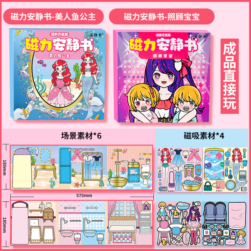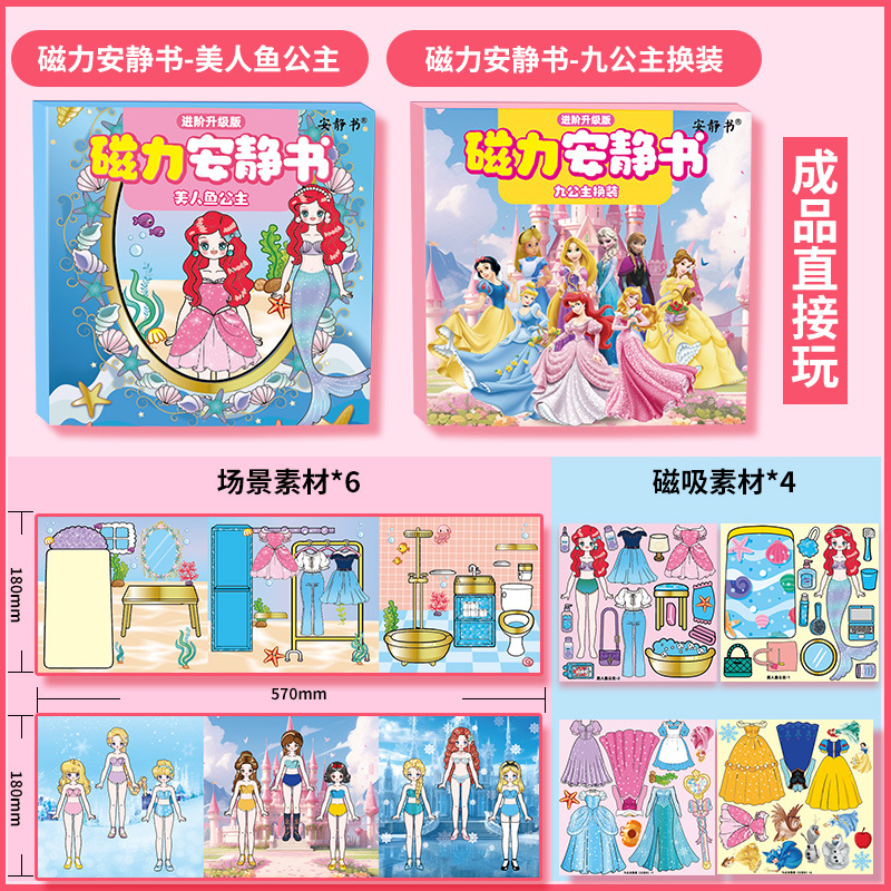 자기 인어 공주 조용한 책 원피스 업 엘사 소년과 소녀 자기 스티커 강한 자기 붙여 넣기 장난감 선물 DIY스토어 가기