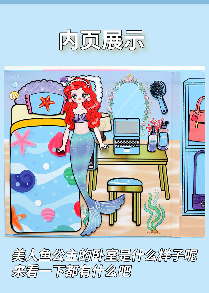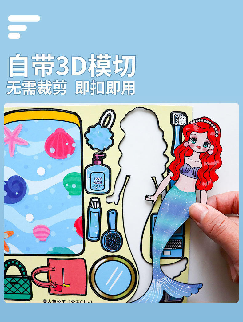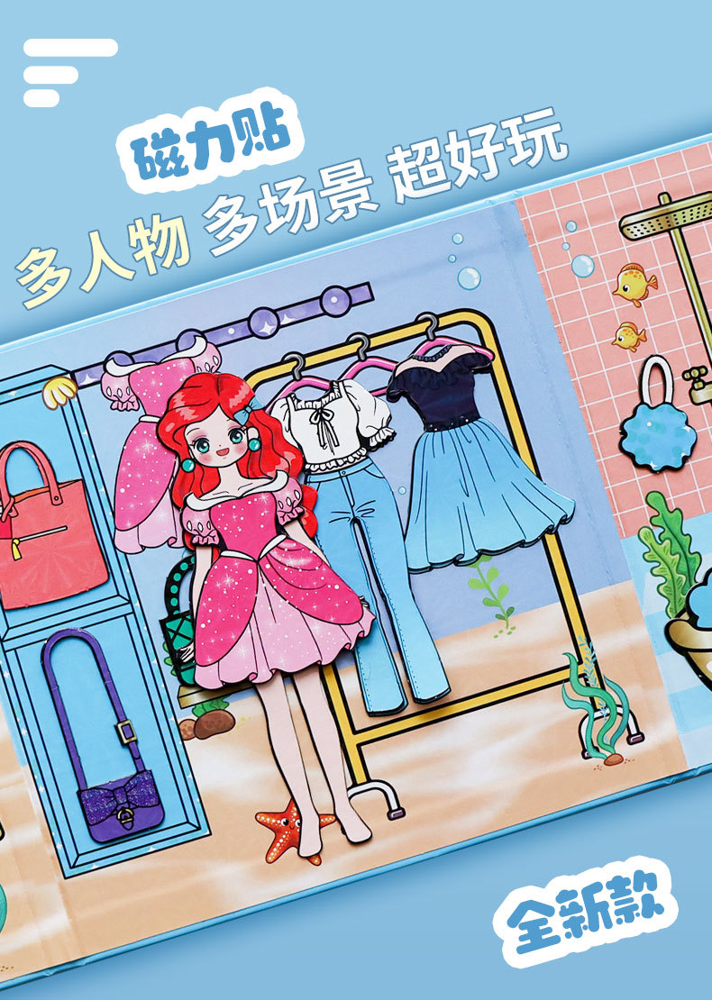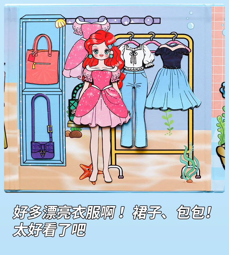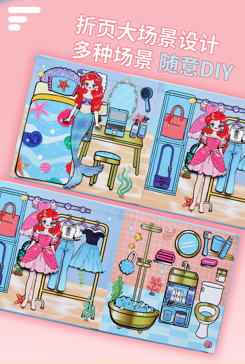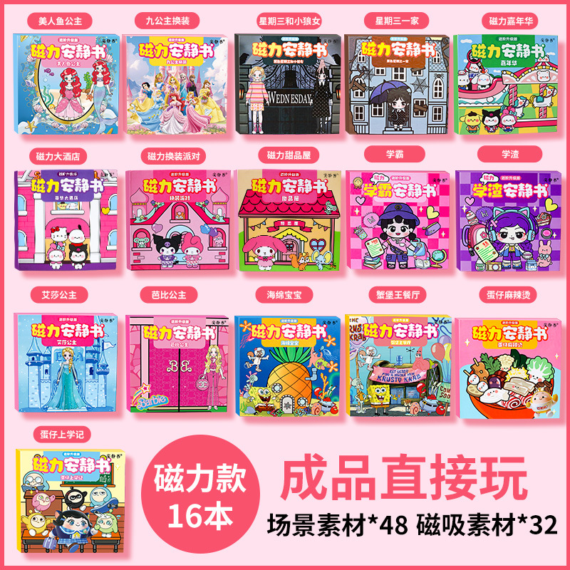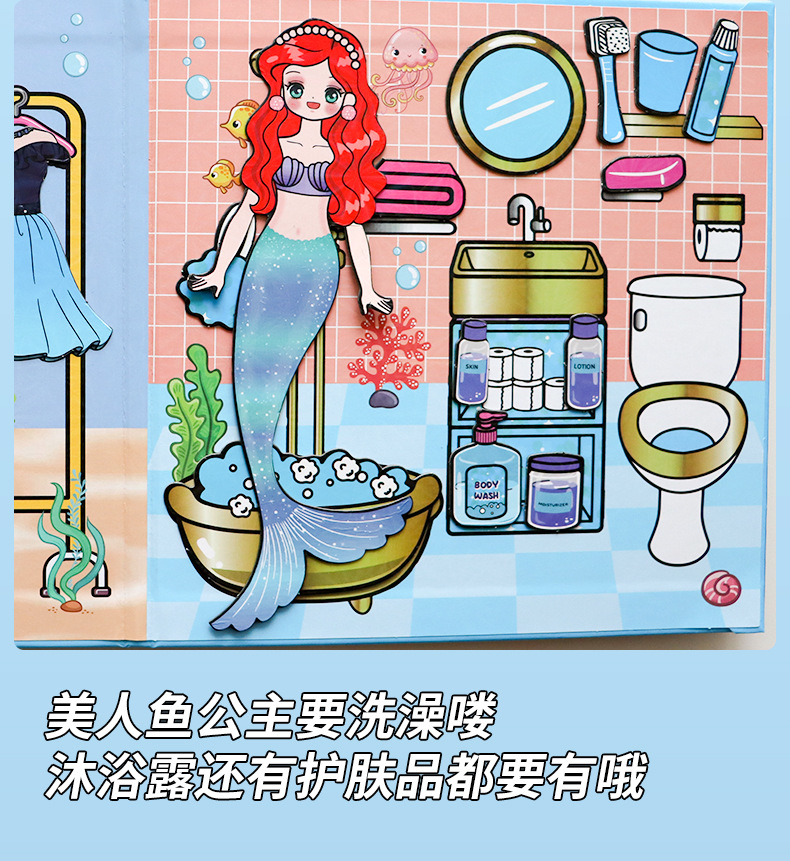 자기 인어 공주 조용한 책 원피스 업 엘사 소년과 소녀 자기 스티커 강한 자기 붙여 넣기 장난감 선물 DIY스토어 가기