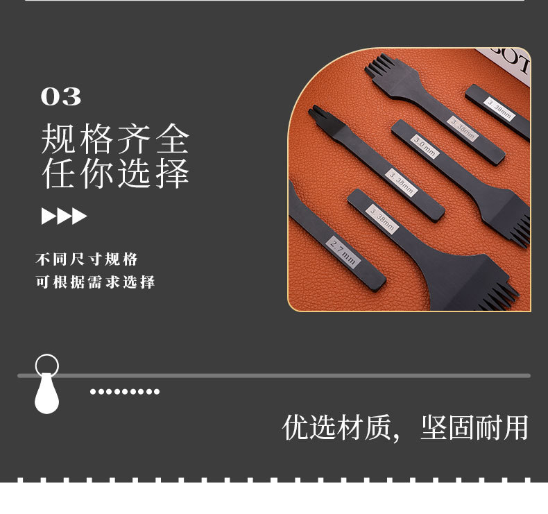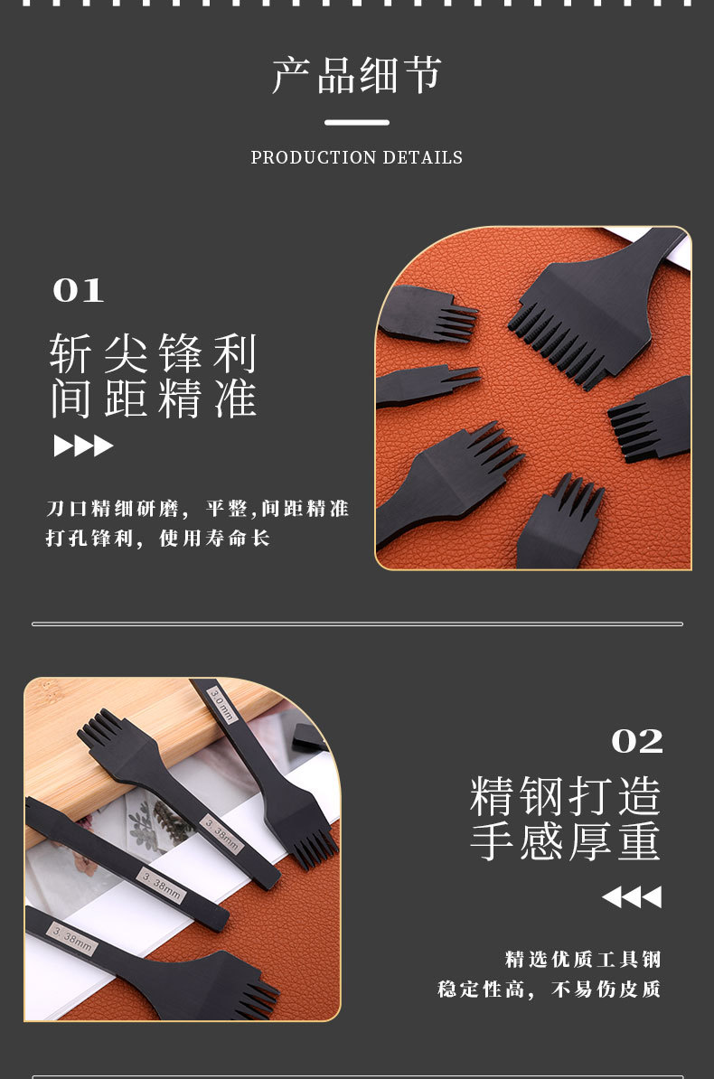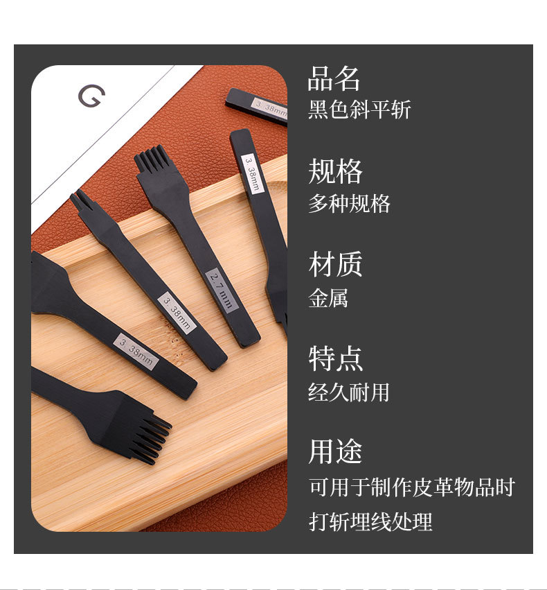 검은 비스듬한 플랫 찹 DIY 수제 가죽 펀칭 도구 2-10 치아 2.7/3.38mm 비스듬한 플랫 컷 도매스토어 가기