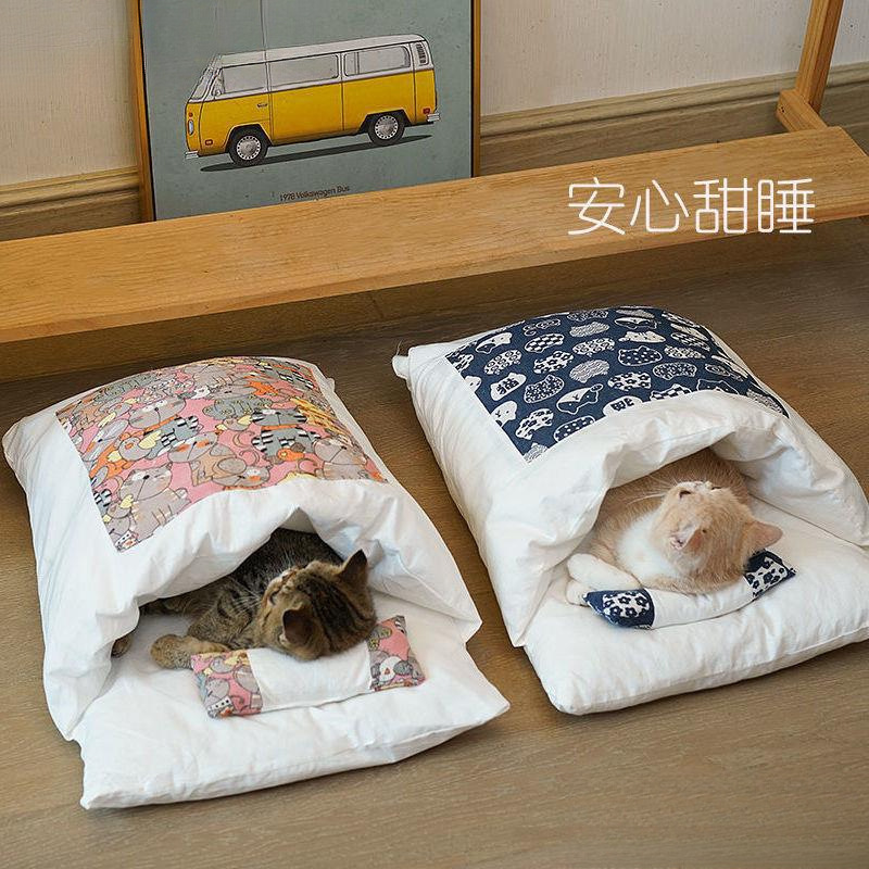 고양이 둥지 고양이 잠자는 가방 겨울 따뜻한 분리 가능하고 빨 수있는 귀여운 고양이 침대 깊은 수면 폐쇄 일본 이불