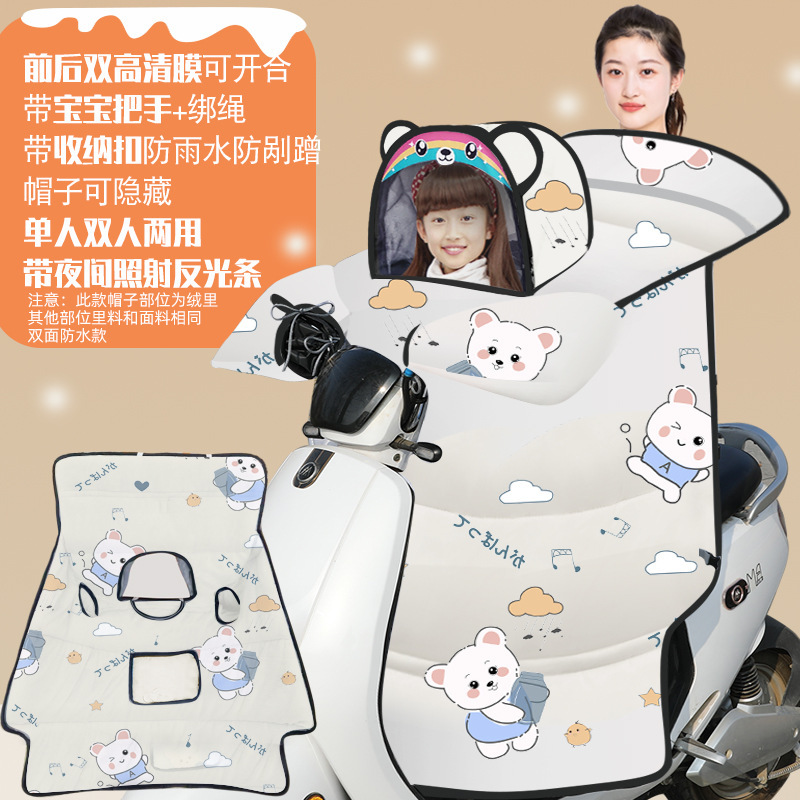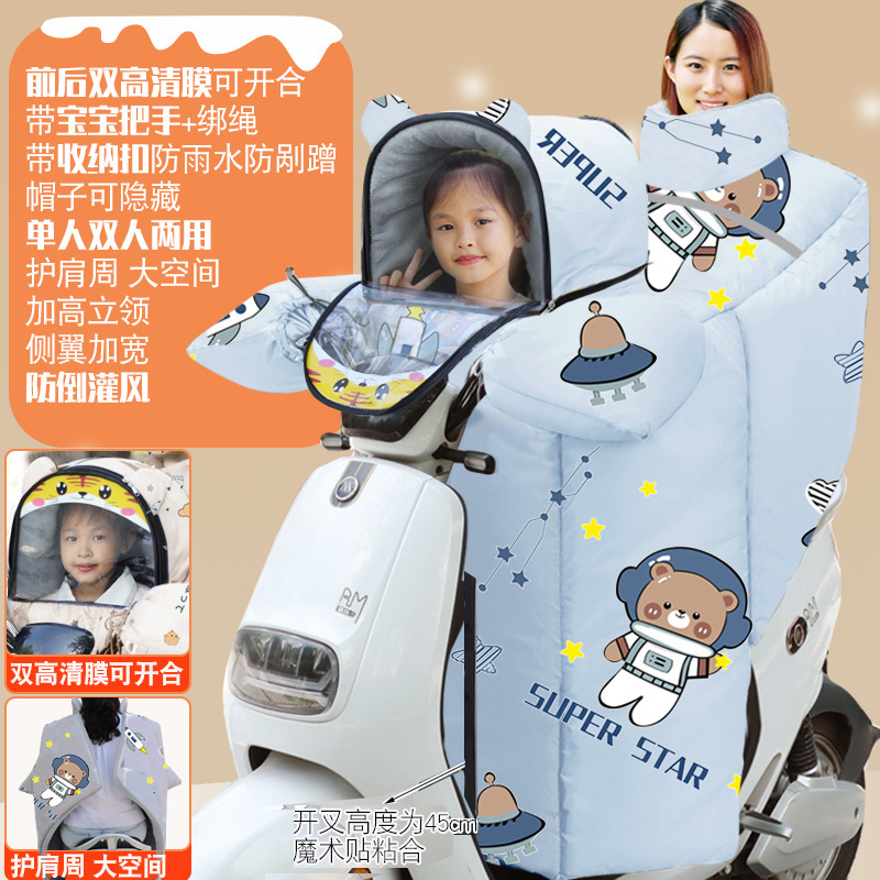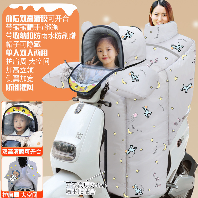어린이 부모-어린이 전기 오토바이 앞 유리 이불 겨울 기모 두꺼운 배터리 트램 두 배 엄마와 아이 겨울 새로운