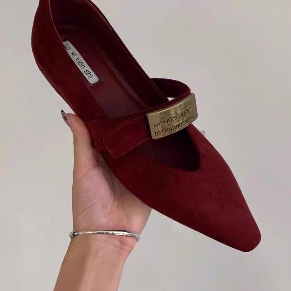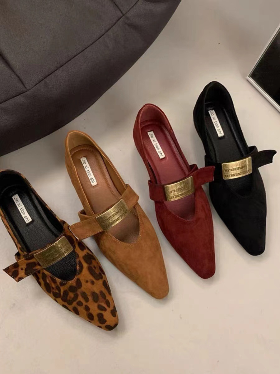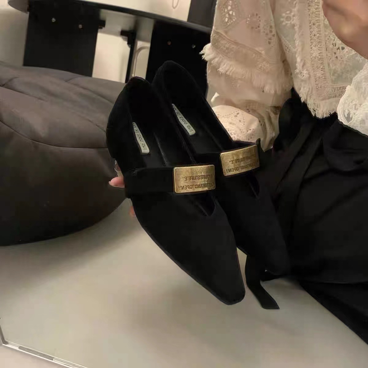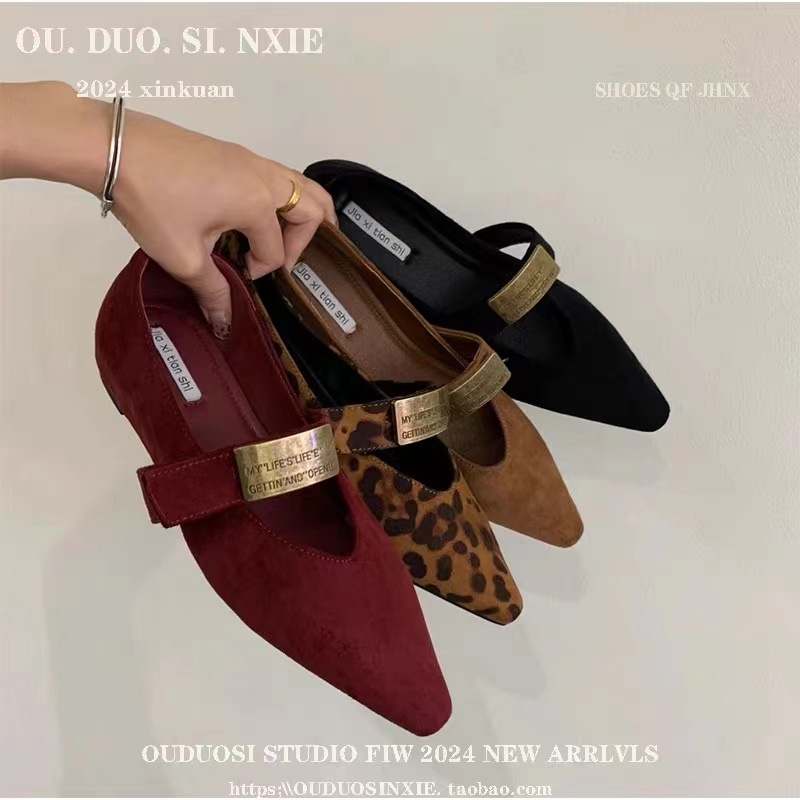 2024 봄과 가을 새로운 한국 스타일 플랫 벨크로 뾰족한 완두콩 싱글 레이어 신발 캐주얼 올 매치 메리 제인 패션 여성 신발스토어 가기