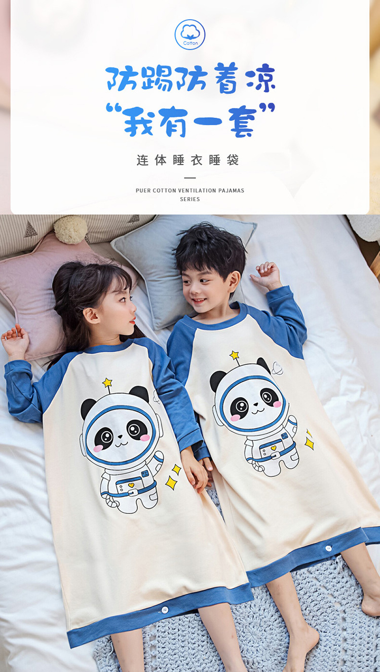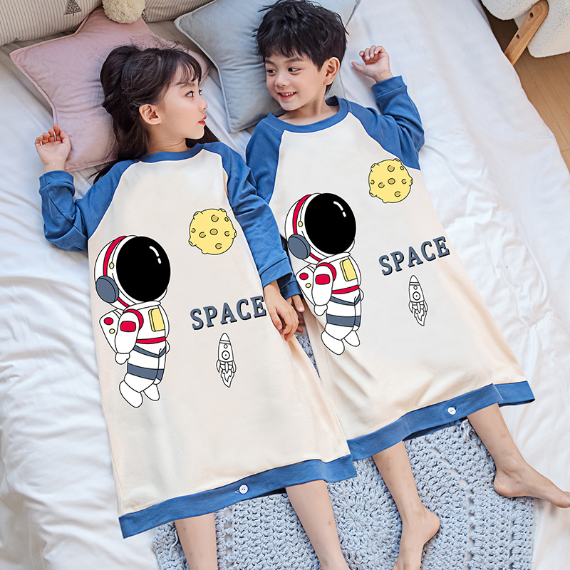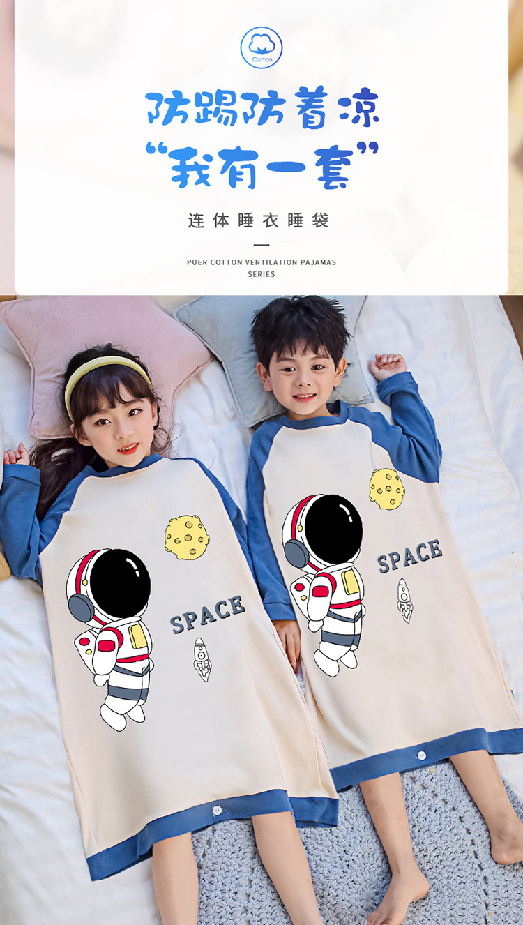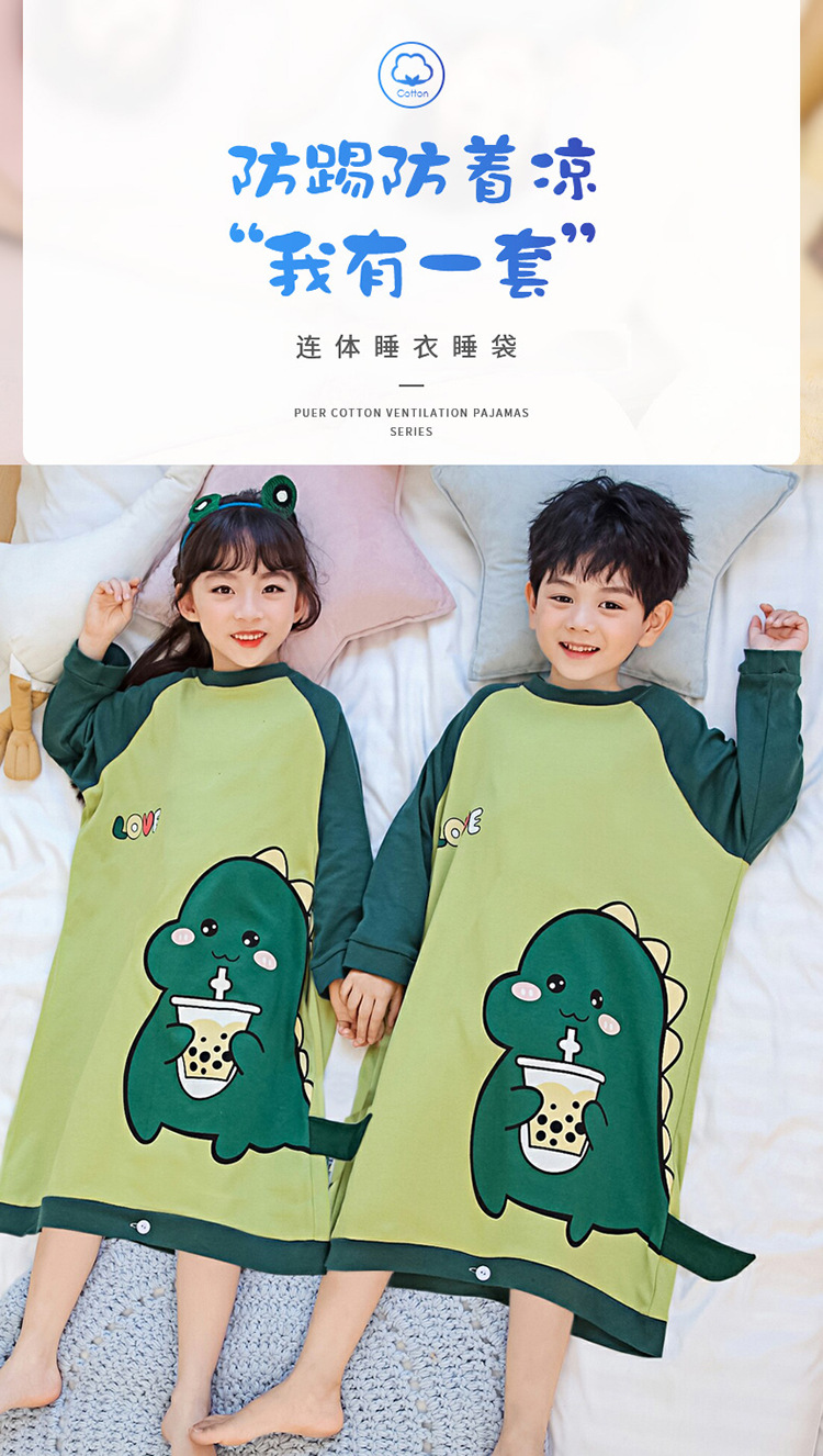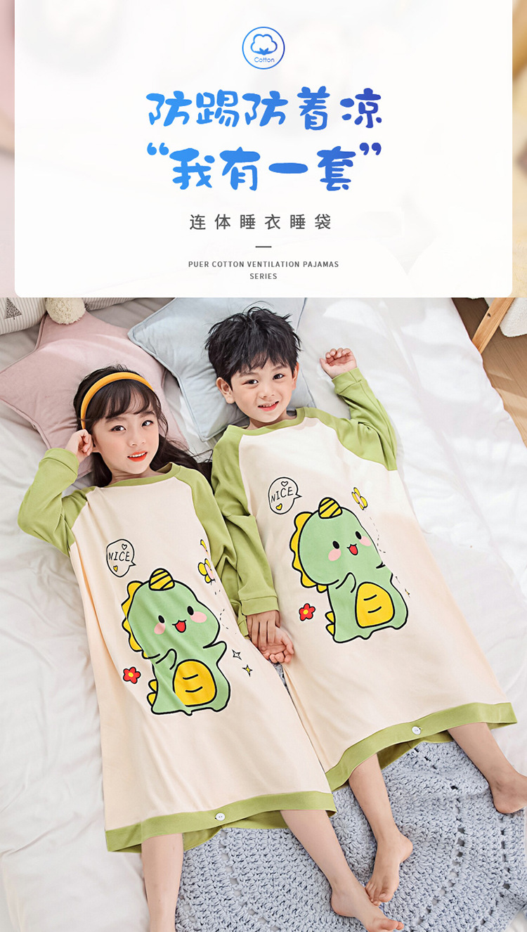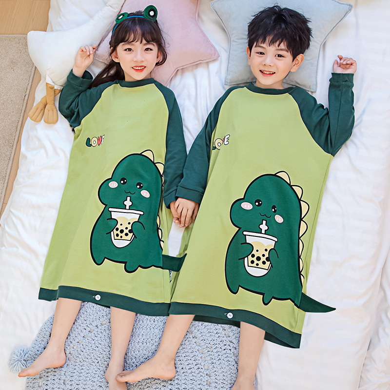 어린이 나이트 가운 소년 봄과 가을 얇은 순면 긴 소매 소녀 만화 소년 중 큰 어린이 방추 슬리퍼