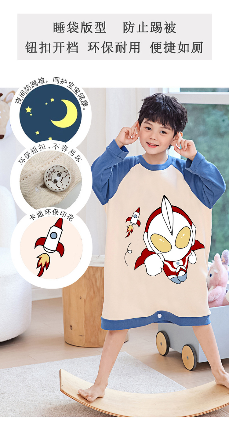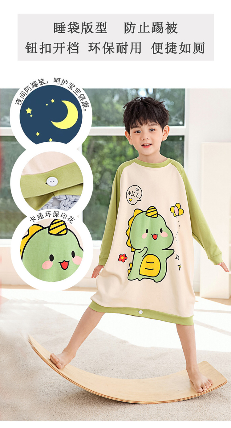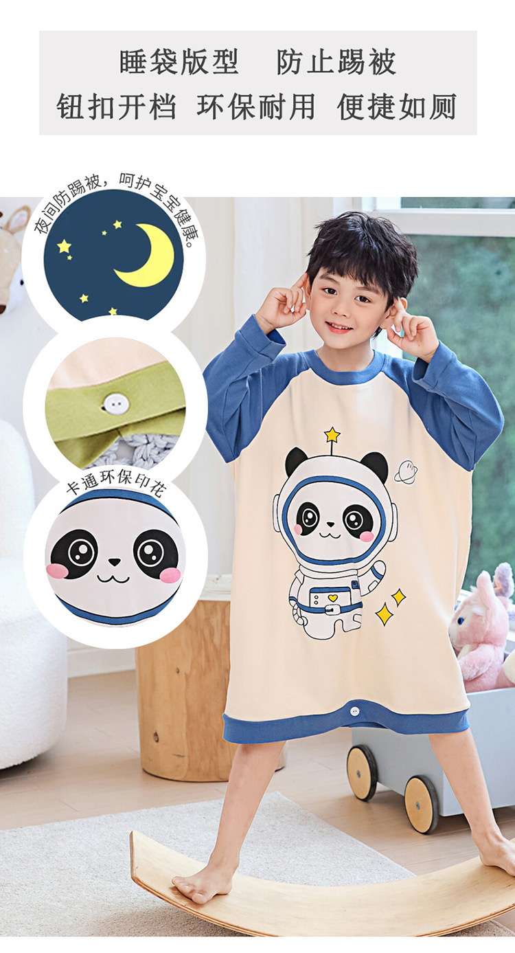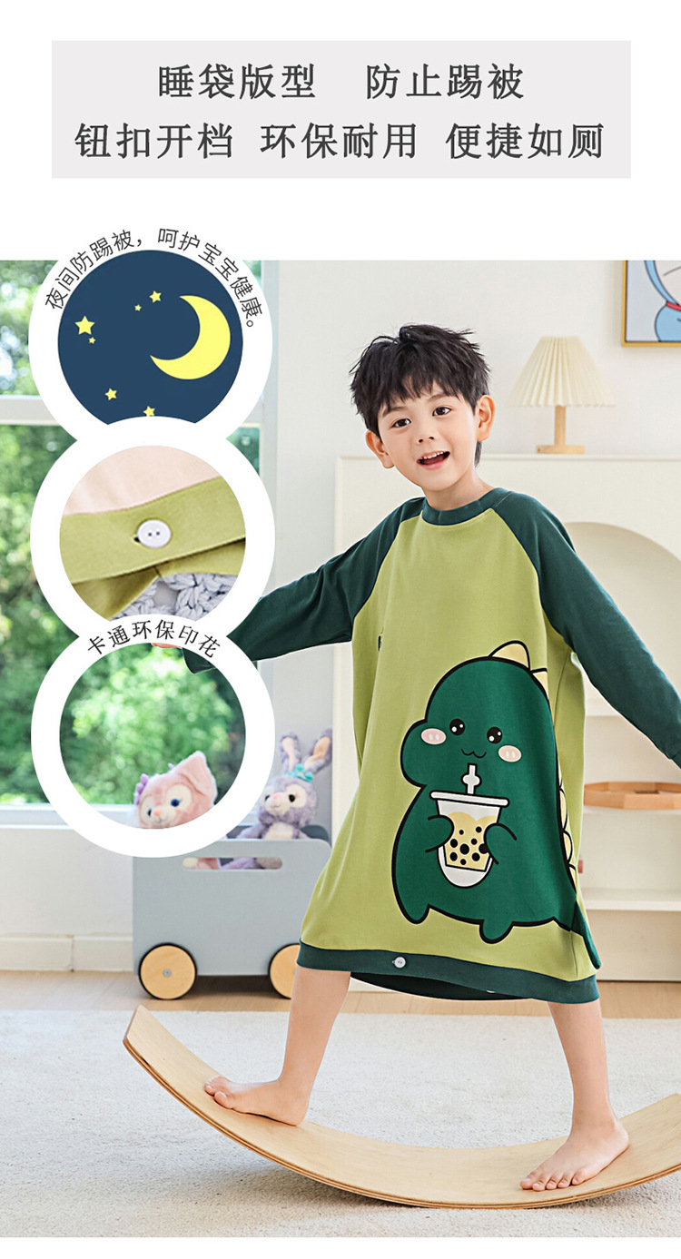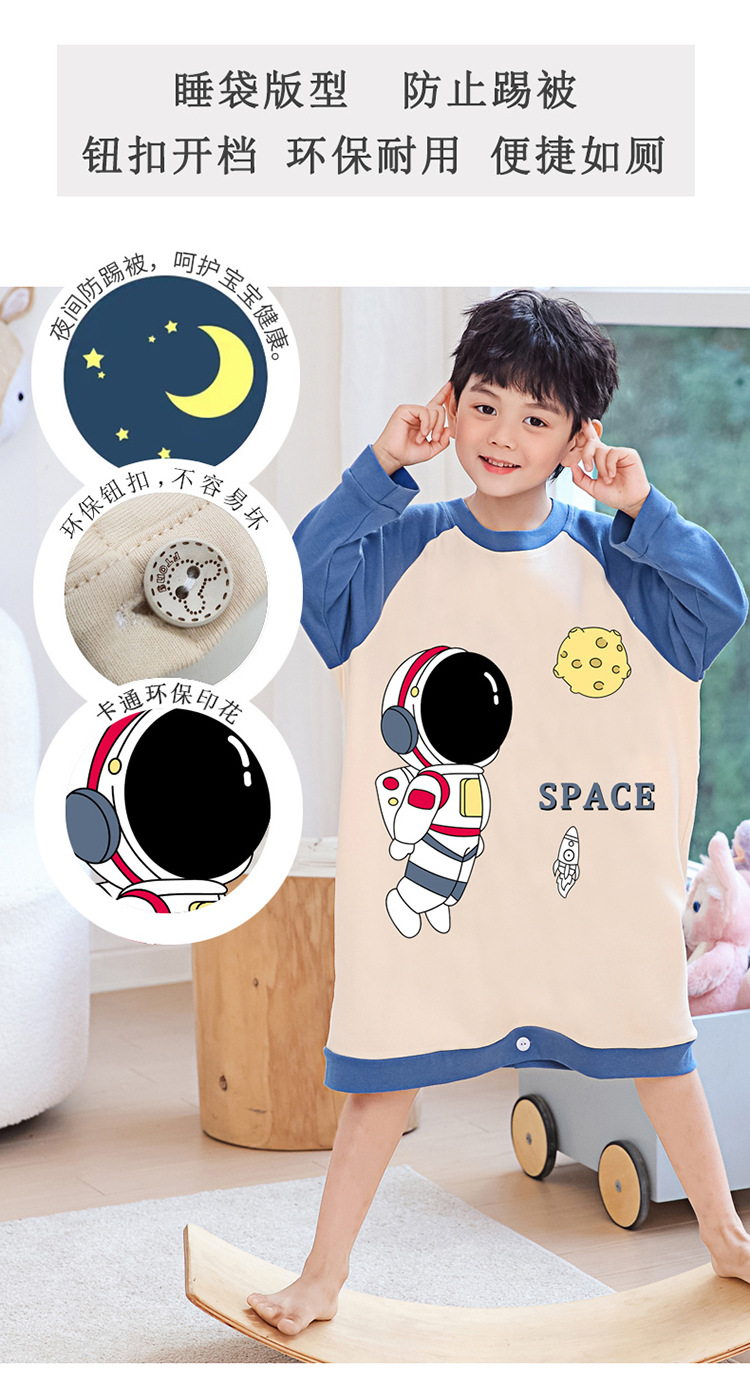 어린이 나이트 가운 소년 봄과 가을 얇은 순면 긴 소매 소녀 만화 소년 중 큰 어린이 방추 슬리퍼
