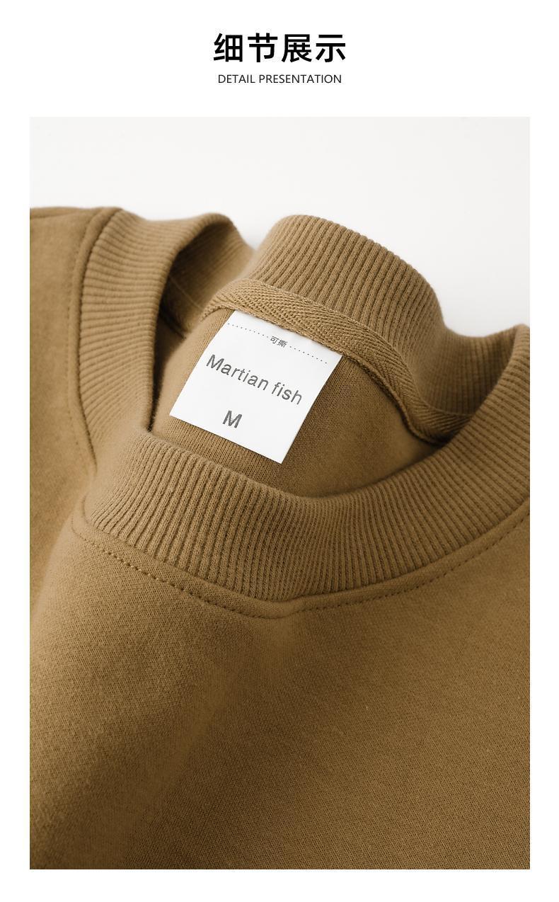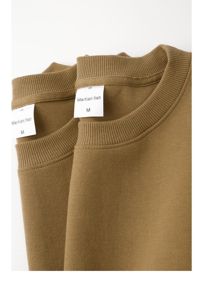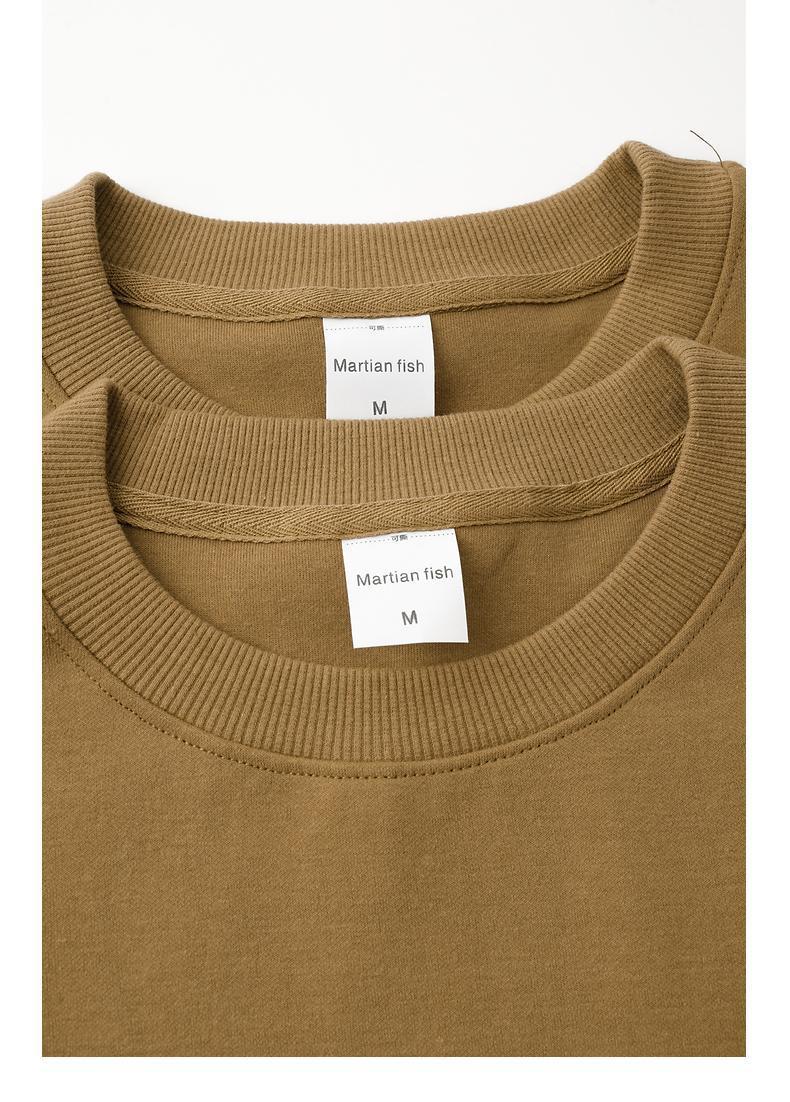 레트로 화이트 모카! 500g 무거운 딥 카키 크루 넥 스웨터 남자 조커 느슨한 캐주얼 베이스 셔츠 여성스토어 가기