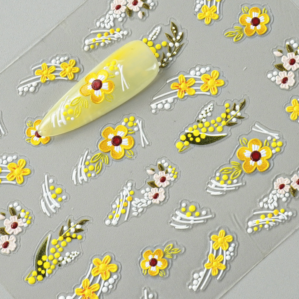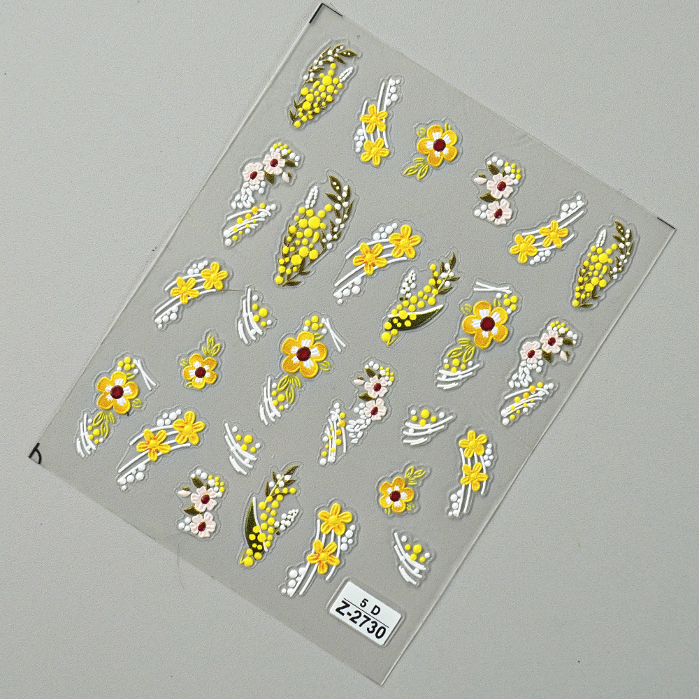 Redanco 새로운 5D 릴리프 그물 레드 인 바람 작은 노란색 네일 스티커 스테레오 네일 스티커 도매 Z-2730스토어 가기