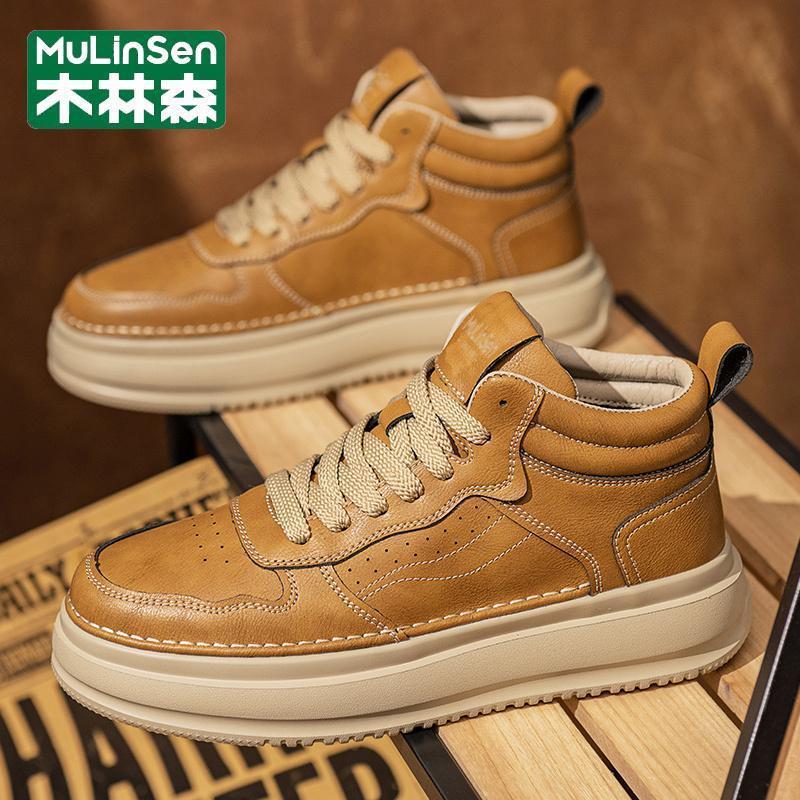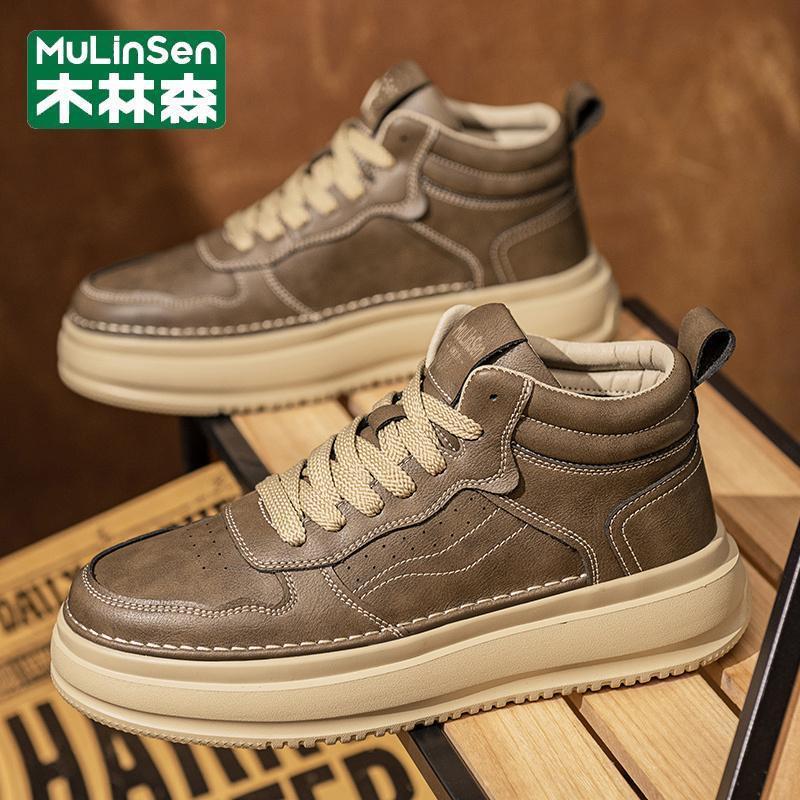 Mullinsen 하이 탑 보드 신발 남자의 2024 새로운 가을 및 겨울 영국 레트로 올 매치 미끄럼 방지 캐주얼 작업복 트렌디 슈즈 Y스토어 가기