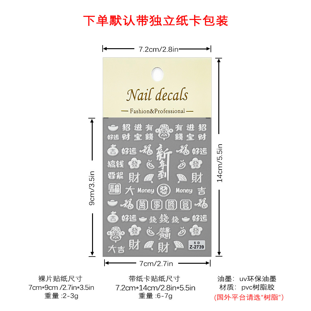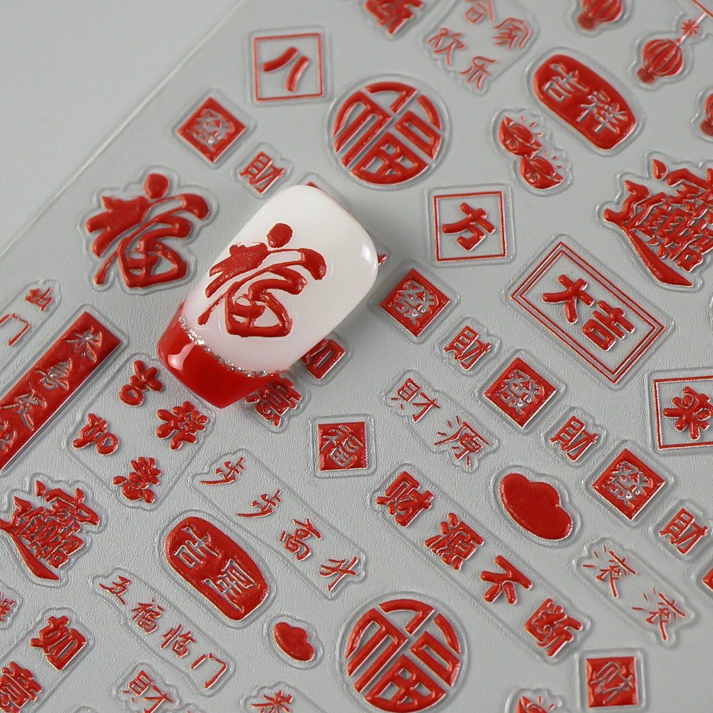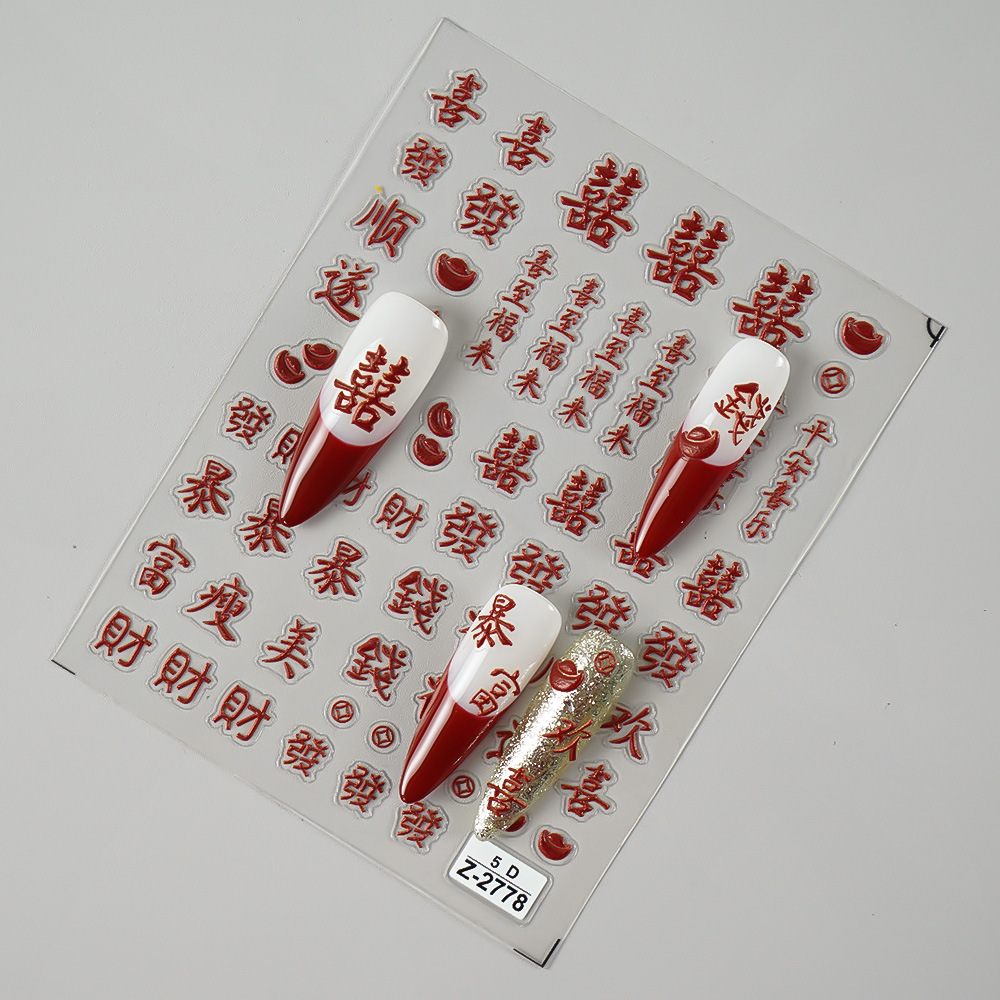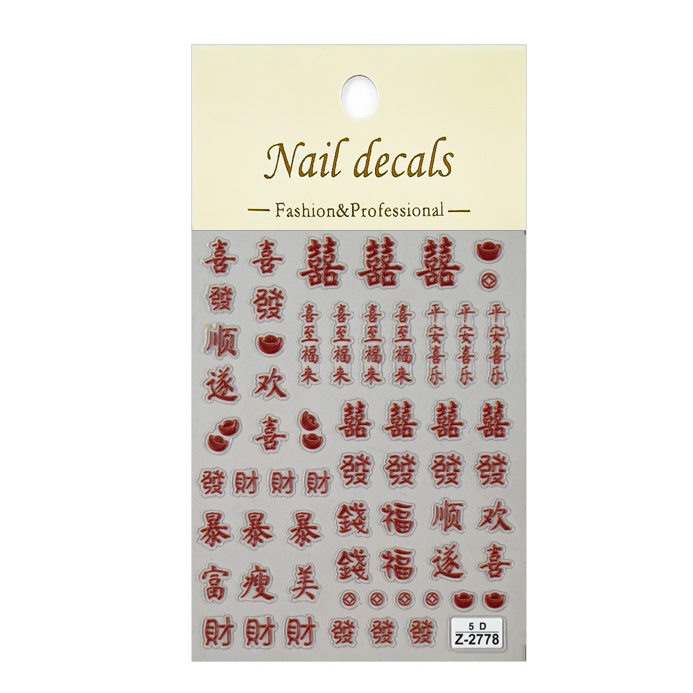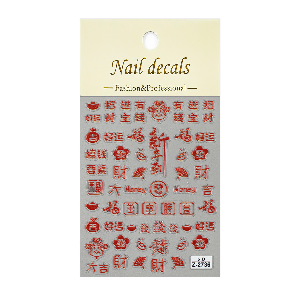 Redanco 새로운 5D Anaglyph Ins 스타일 봄 축제 포춘 매니큐어 스티커 스테레오 네일 스티커 Z-2737스토어 가기
