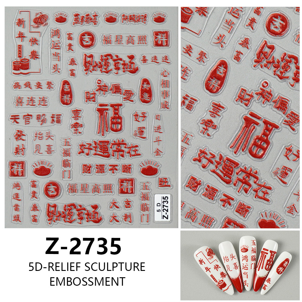 Redanco 새로운 5D Anaglyph Ins 스타일 봄 축제 포춘 매니큐어 스티커 스테레오 네일 스티커 Z-2737