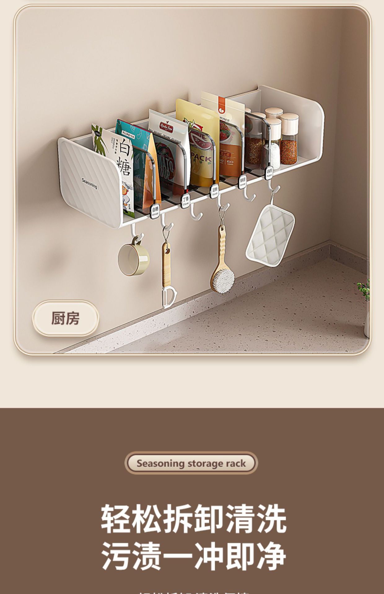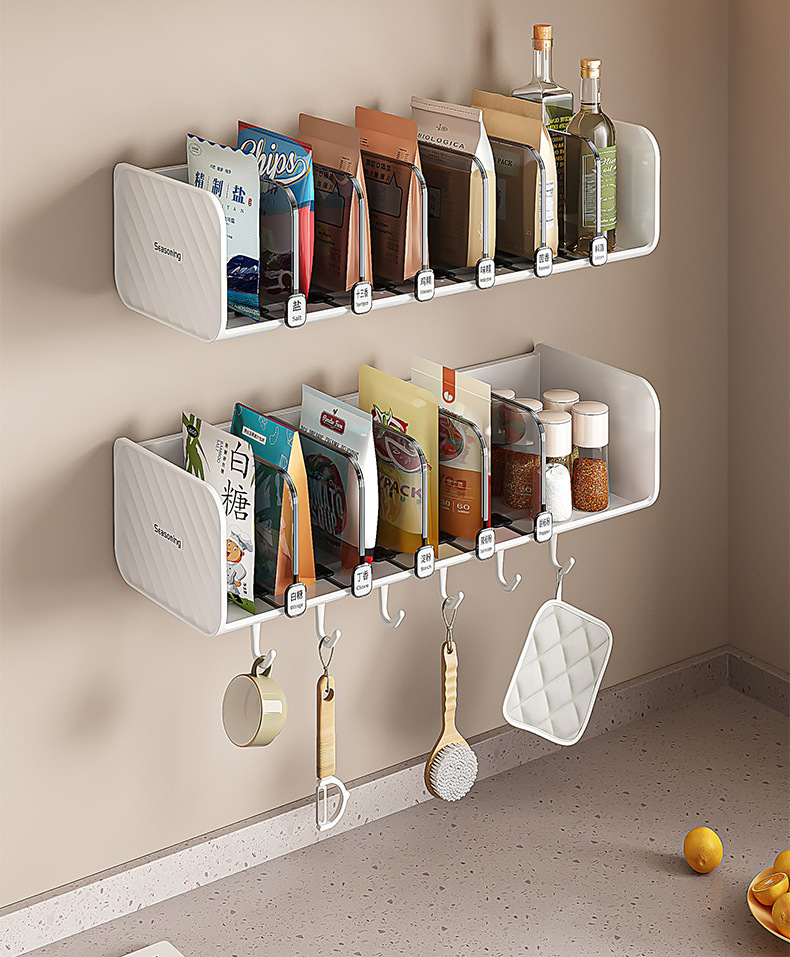 주방 조미료 선반 비 천공 벽 장착 가방 조미료 선반 다기능 병 및 항아리 조미료 가방 보관 상자