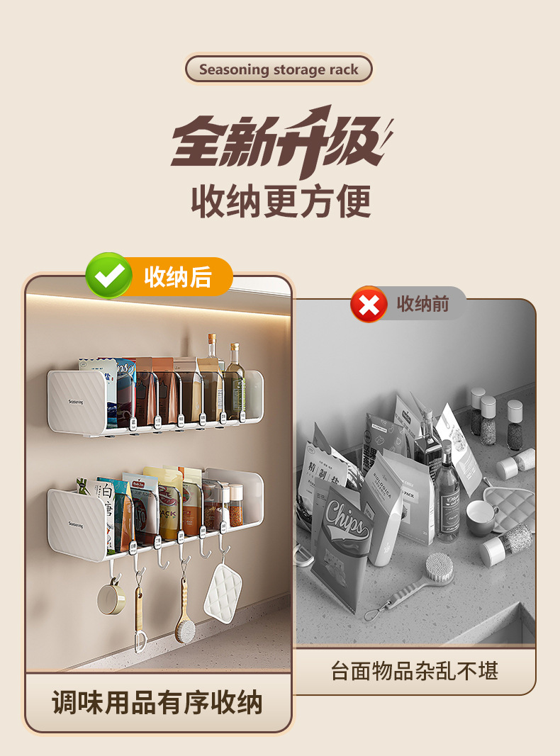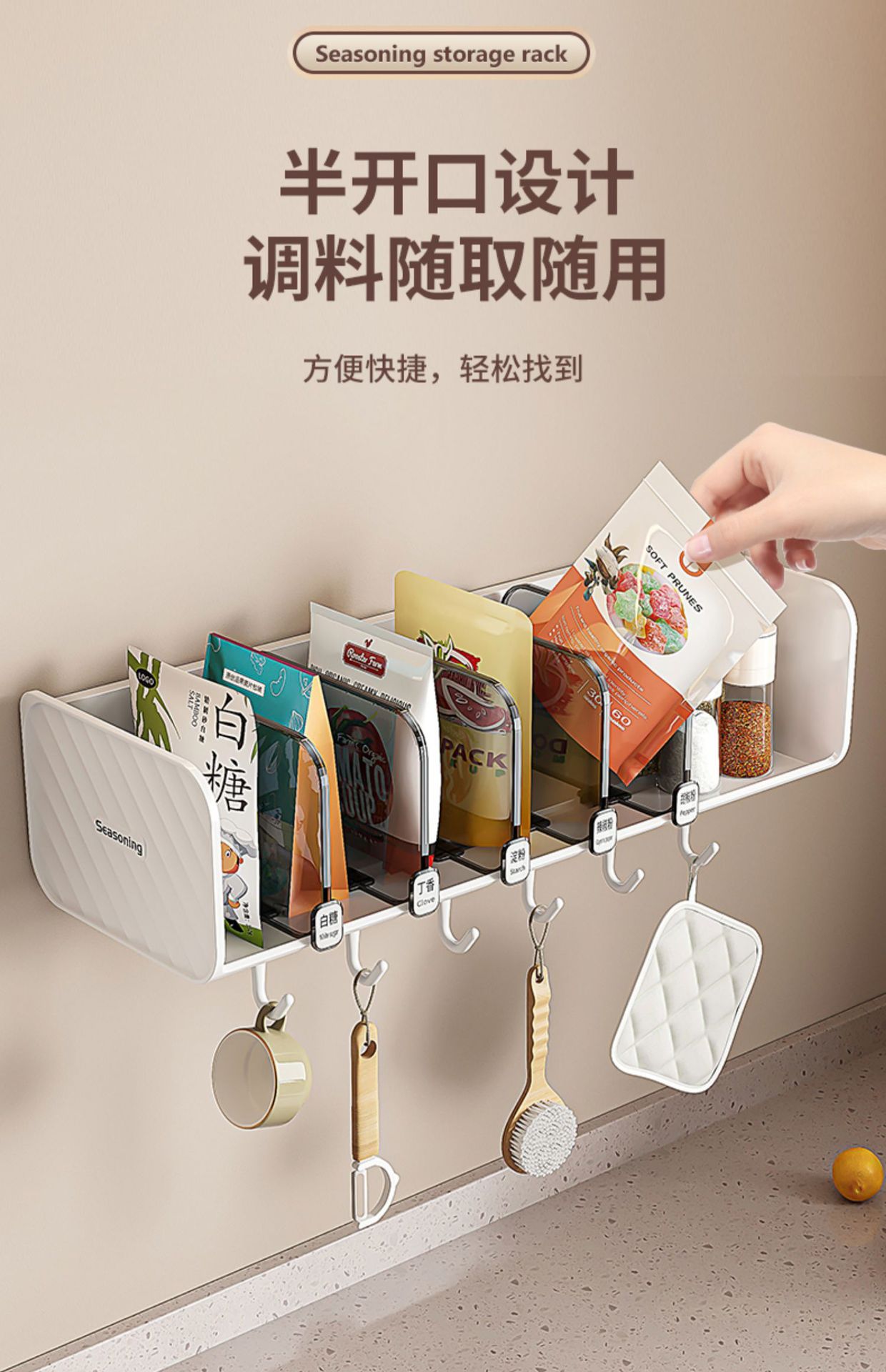 주방 조미료 선반 비 천공 벽 장착 가방 조미료 선반 다기능 병 및 항아리 조미료 가방 보관 상자스토어 가기