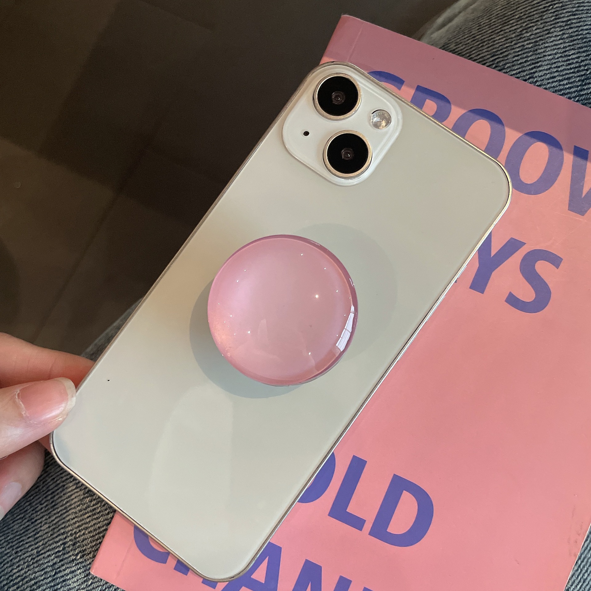 컬러풀한 단색 에어백 스탠드 원형 마카롱 스타일 인스 모란디 유리 휴대폰 거치대 신축형 도매