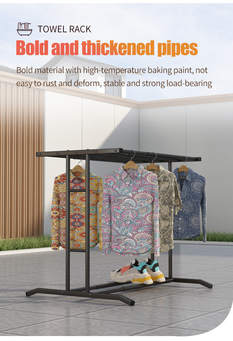 다기능 빨래건조대, 바닥형 빨래건조대, 철제 신형 두꺼운 옷걸이, 수건걸이, 가정용 침실 발코니용스토어 가기