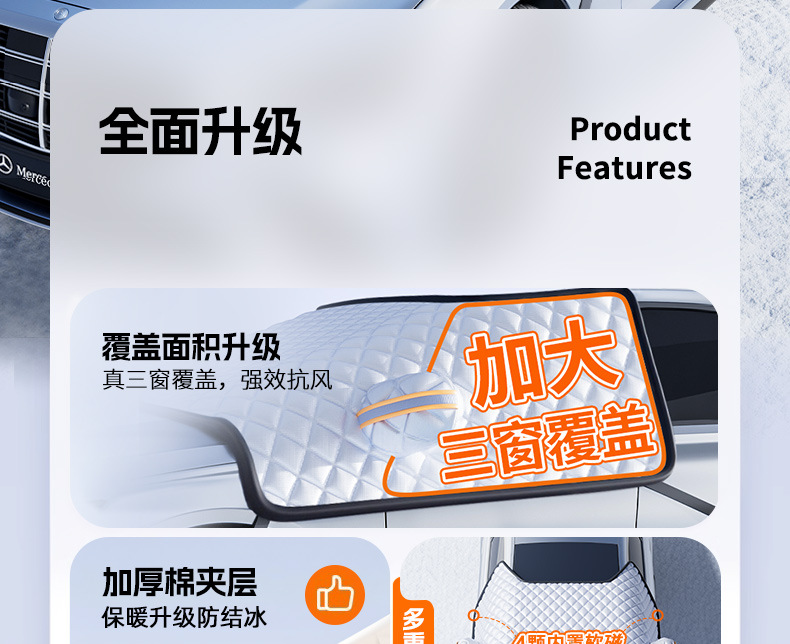 • 상단 구성 [메르세데스-벤츠 전체 시리즈] 진정한 3개의 창문이 두꺼워졌습니다.★업그레이드된 스트랩으로 바람에 더욱 강함★무료 눈삽 + 보관 가방