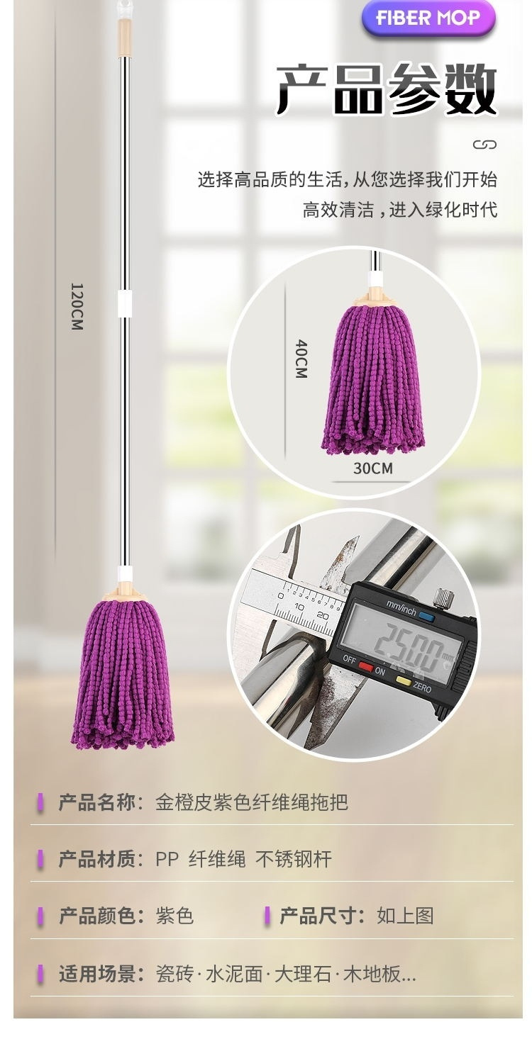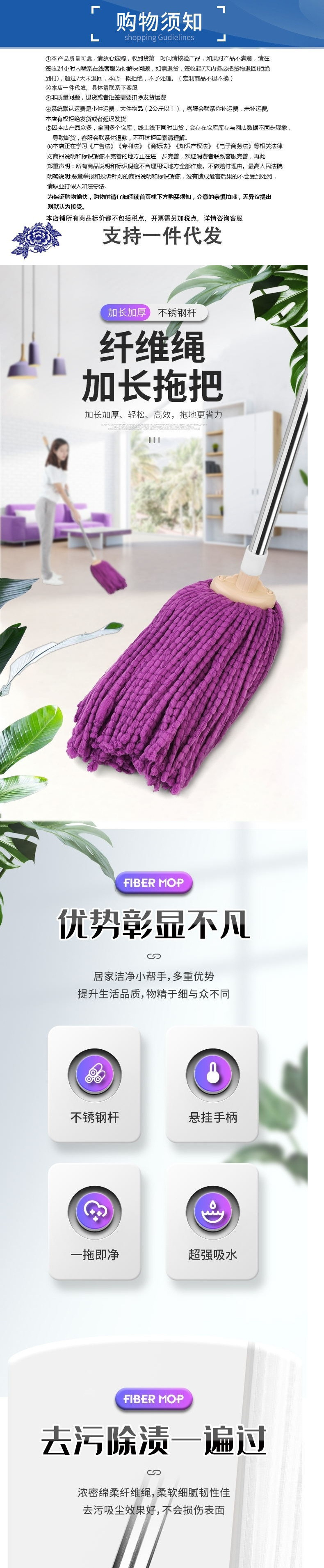 물 흡수성 올드 스타일 걸레 가정용 마이크로 화이버 로프 걸레 무 물 흡수 내구성 보라색 긴 빠른 건조스토어 가기