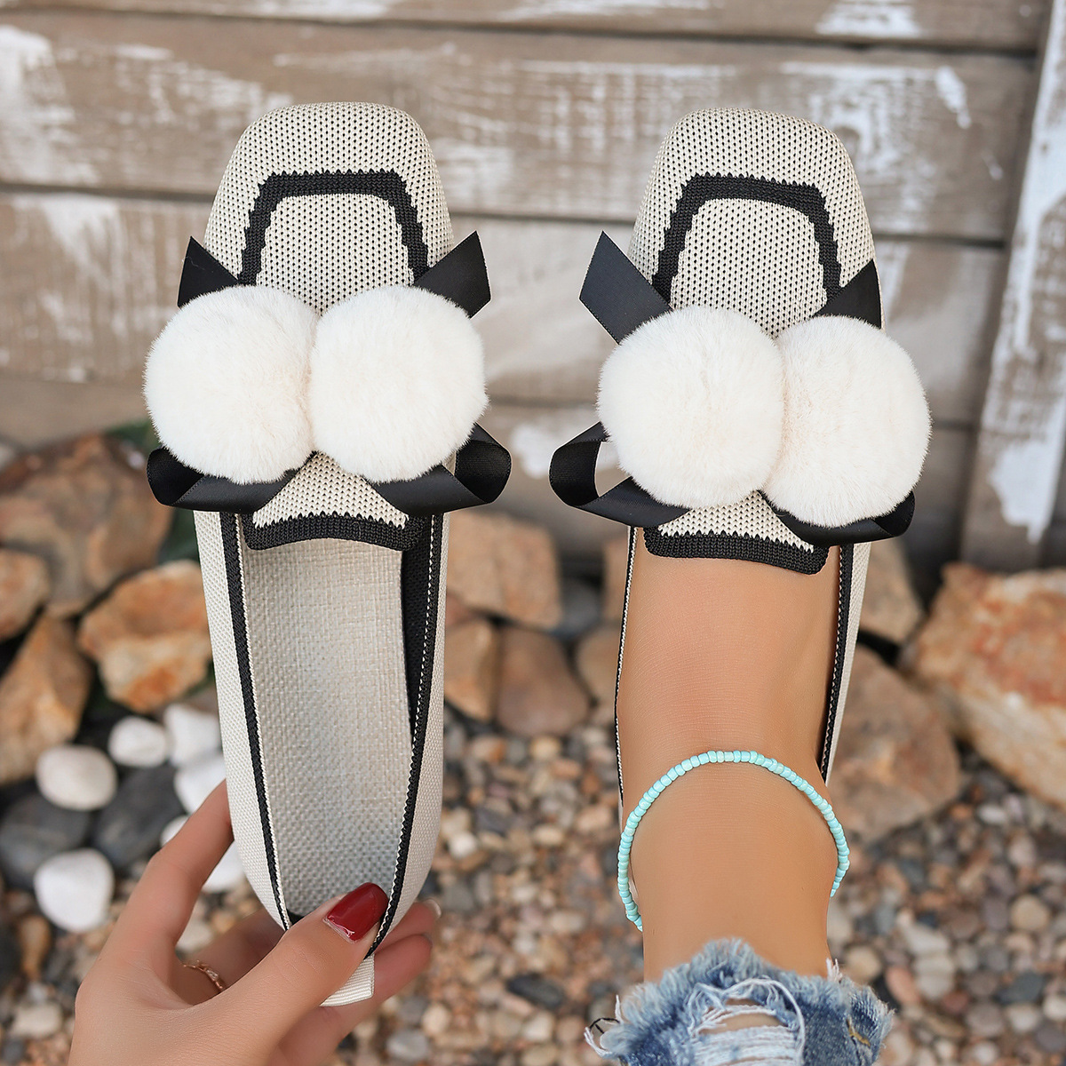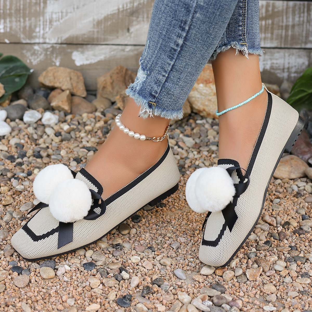 아마존 국경 간 대외 무역 플러스 사이즈 플라이 짠 통기성 플랫 신발 여성 발 모피 볼 얕은 입 게으른 작업 신발