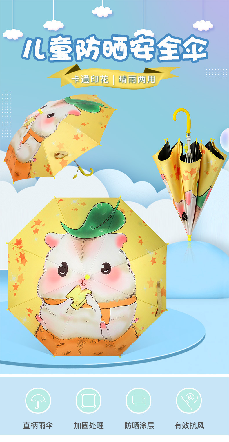 어린이 만화 우산 스몰 사이즈 유치원 2 ~ 4 세 소년 소녀 안전 안티 핀치 손 써니 우산 검은 고무 선 스크린스토어 가기
