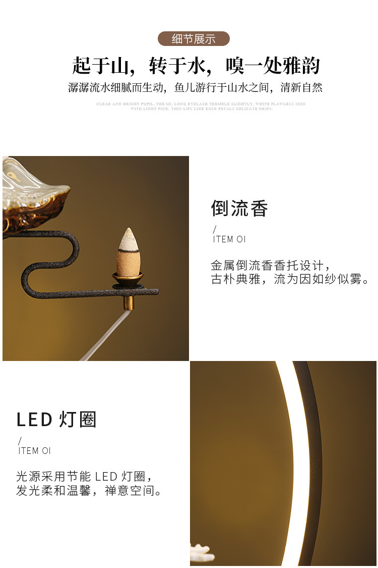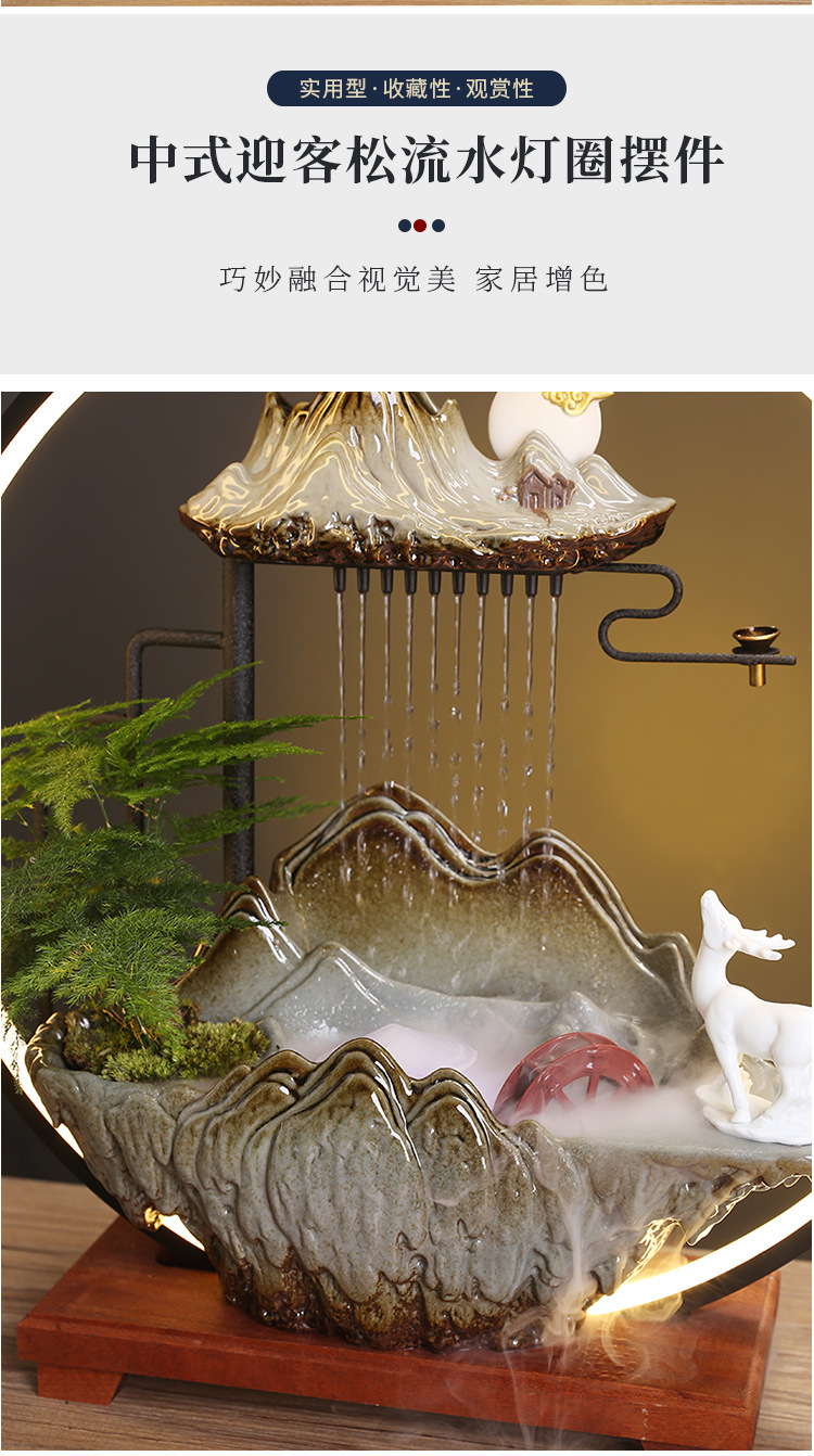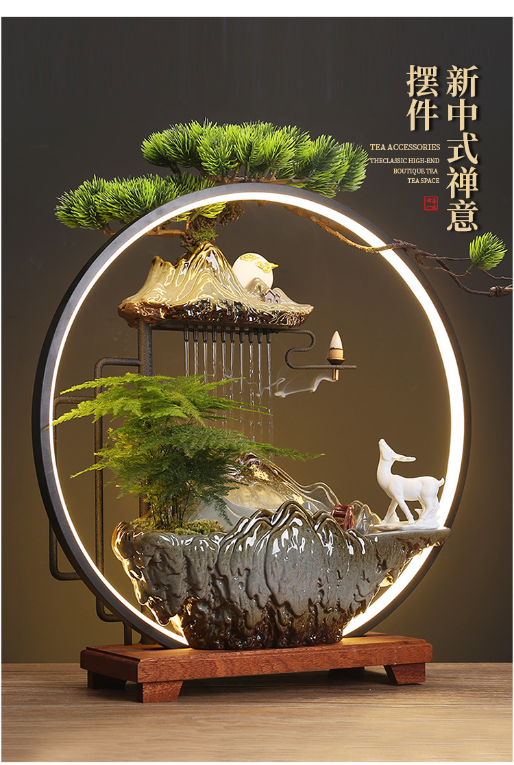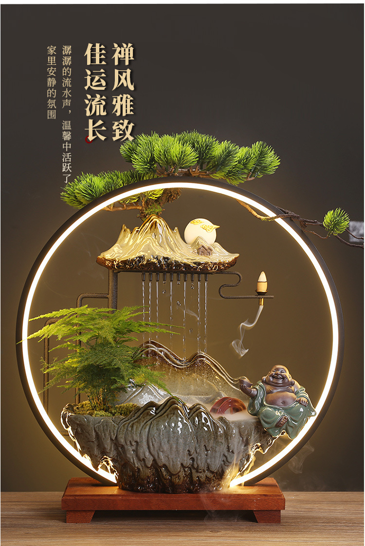 러닝워터 장식품 홈 리버스 플로우 향 중국식 리버스 플로우 캐스터 거실 가습기 사무실 집들이 새 집 개회식스토어 가기