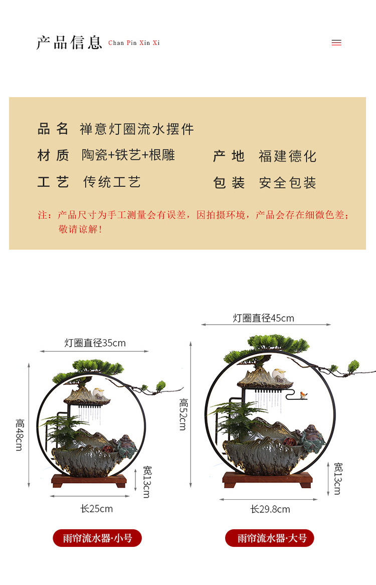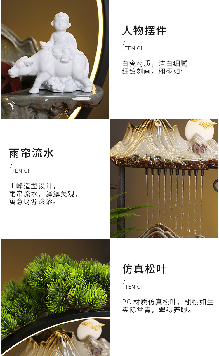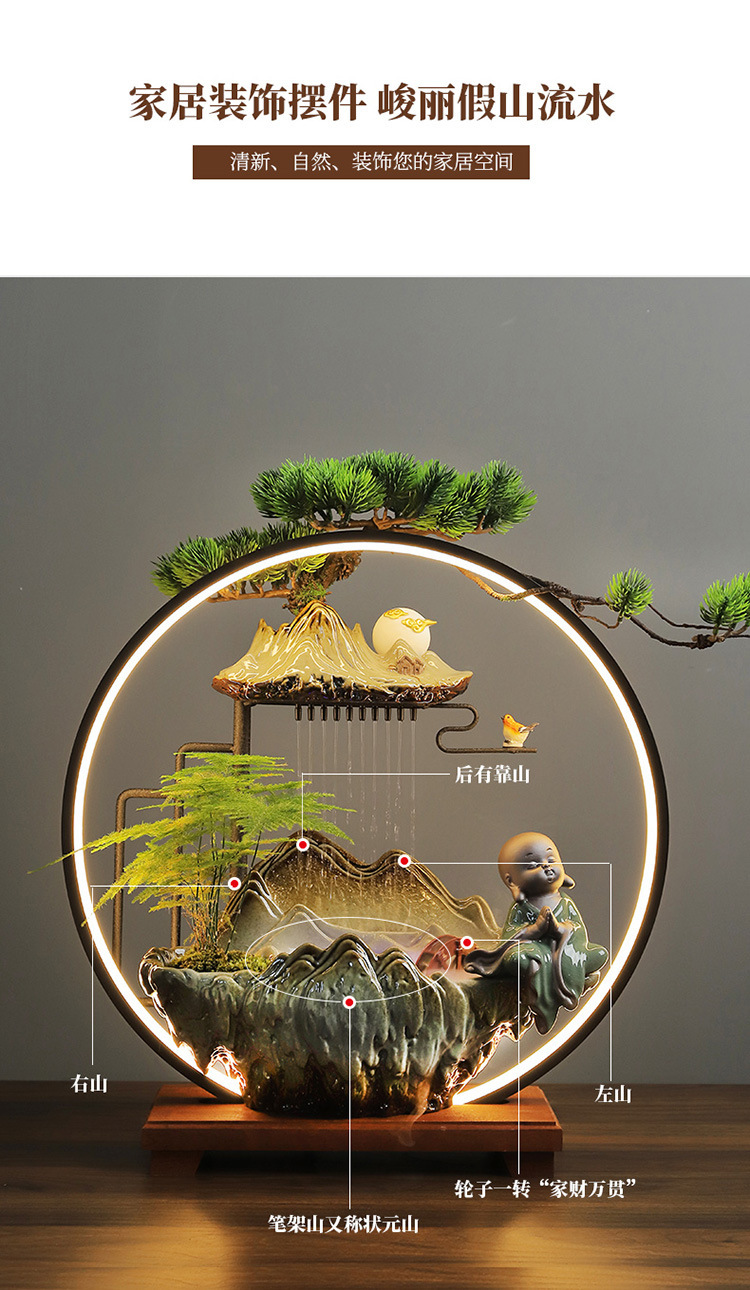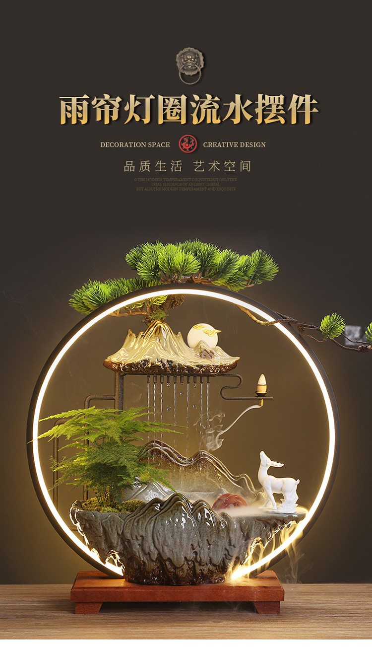 러닝워터 장식품 홈 리버스 플로우 향 중국식 리버스 플로우 캐스터 거실 가습기 사무실 집들이 새 집 개회식스토어 가기