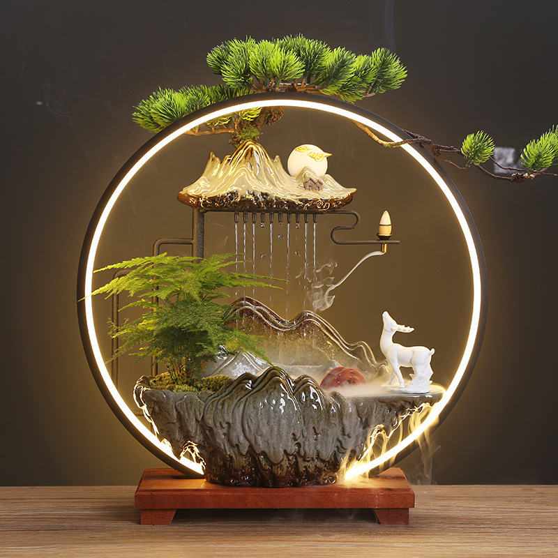 러닝워터 장식품 홈 리버스 플로우 향 중국식 리버스 플로우 캐스터 거실 가습기 사무실 집들이 새 집 개회식
