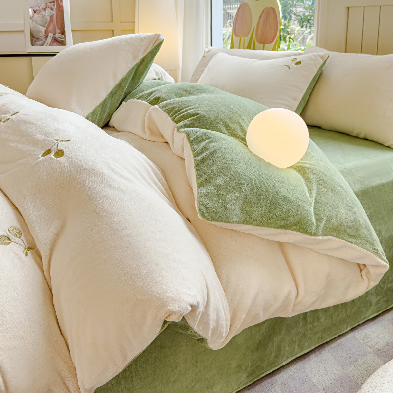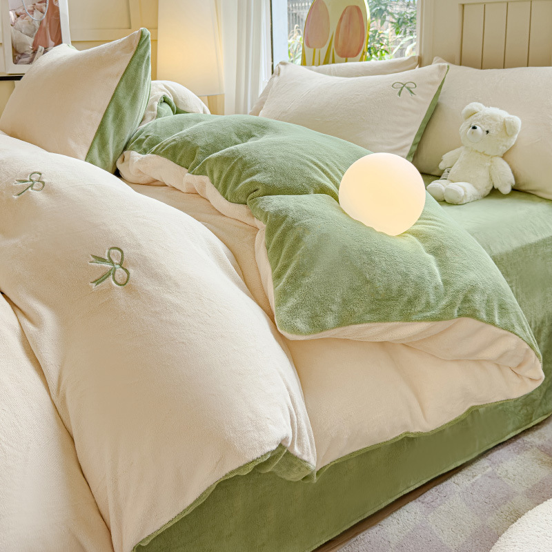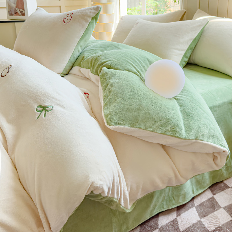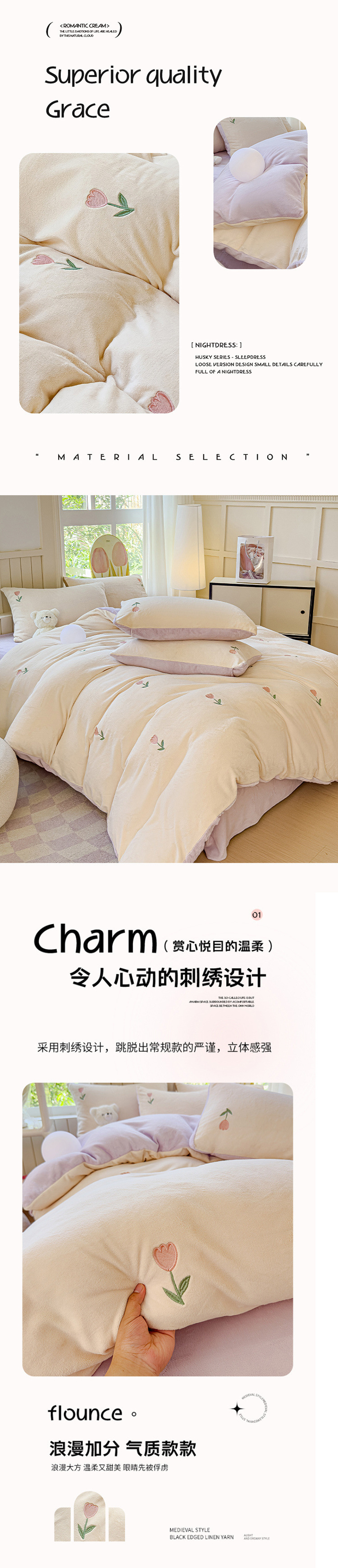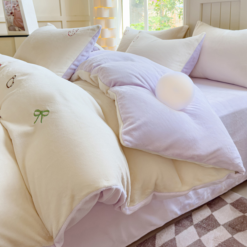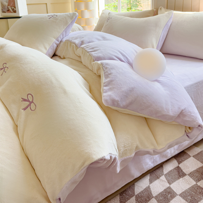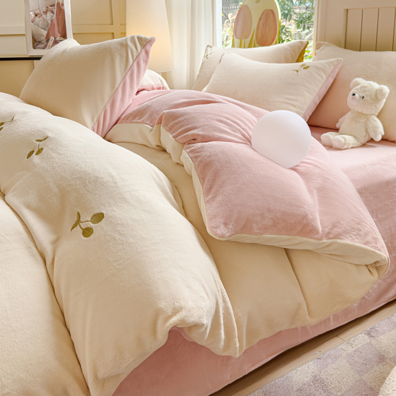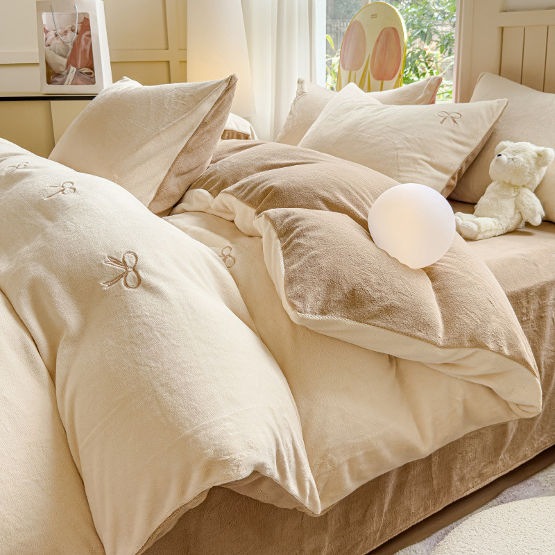클래스 A 밀크 벨벳 침대 4 피스 세트 가을과 겨울 2024 새로운 산호 벨벳 플란넬 퀼트 커버 시트 3 피스 세트