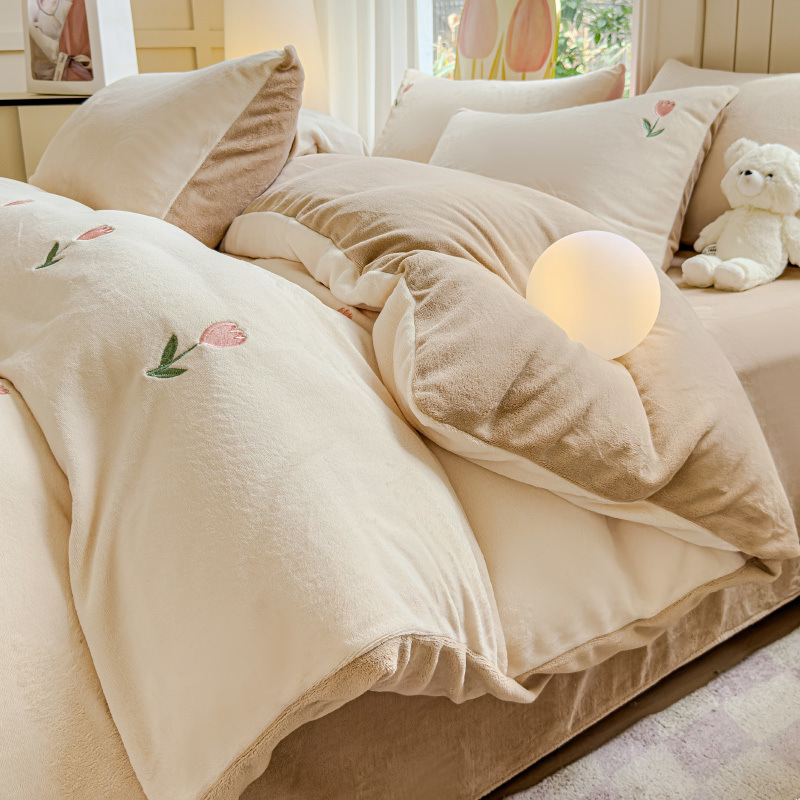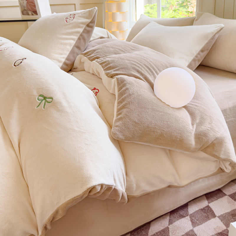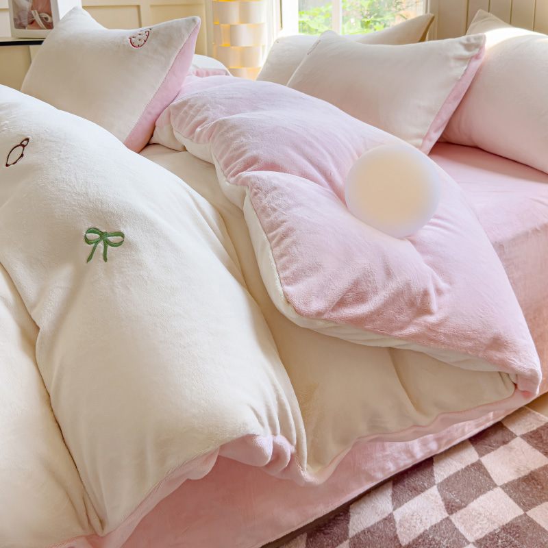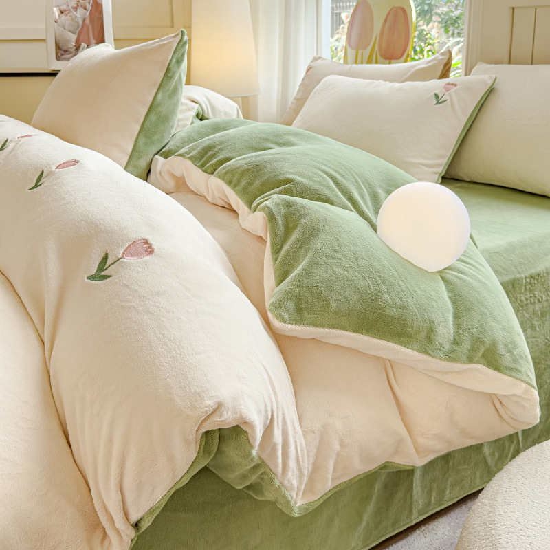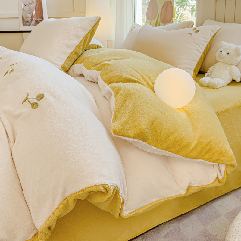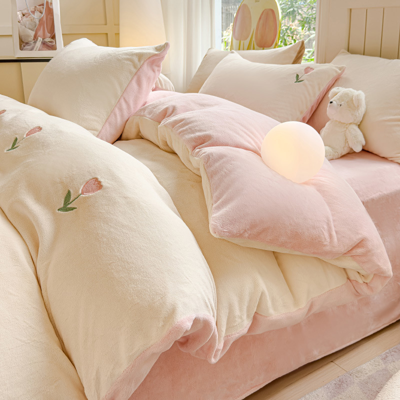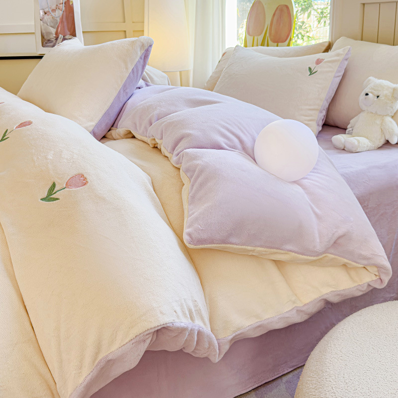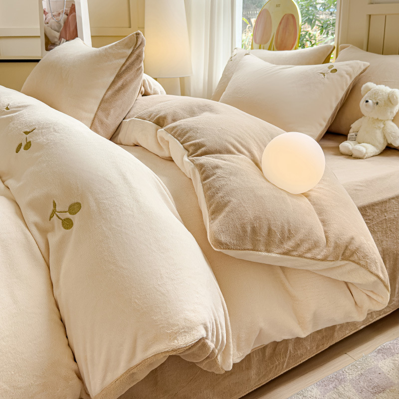 클래스 A 밀크 벨벳 침대 4 피스 세트 가을과 겨울 2024 새로운 산호 벨벳 플란넬 퀼트 커버 시트 3 피스 세트