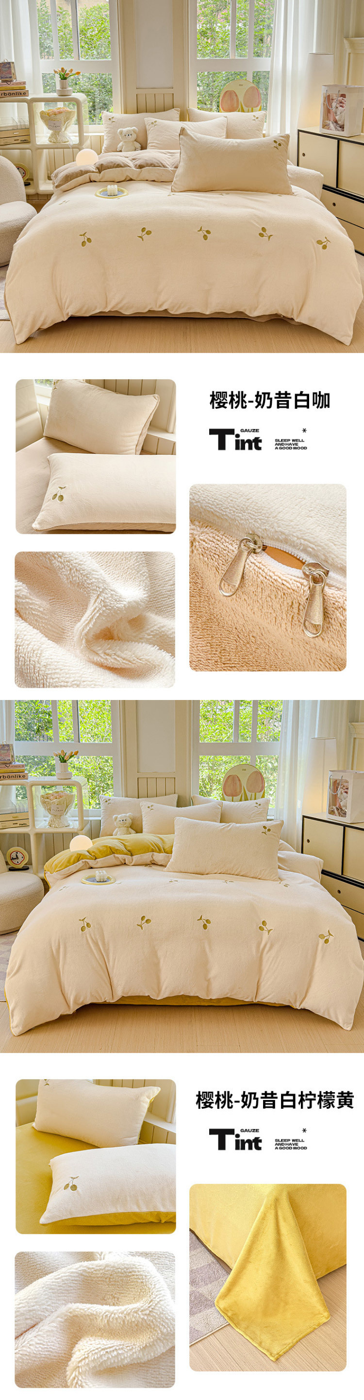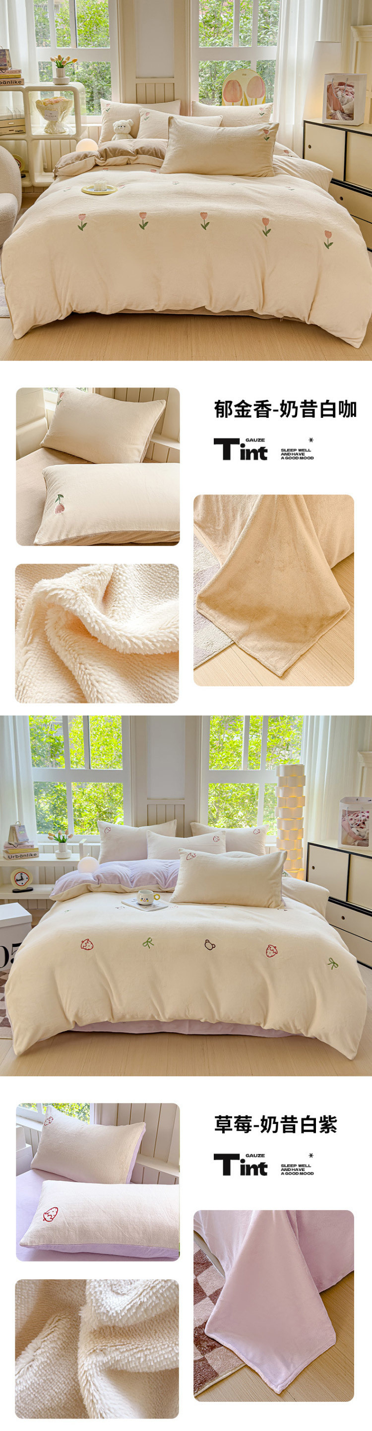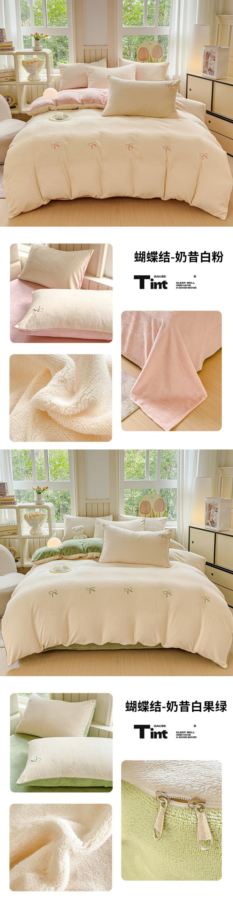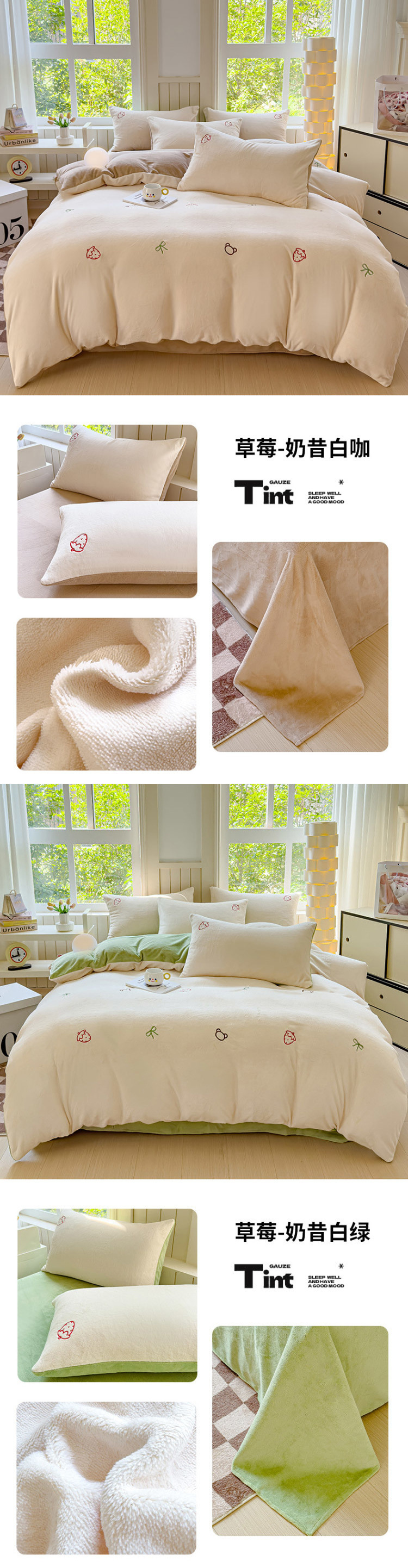 클래스 A 밀크 벨벳 침대 4 피스 세트 가을과 겨울 2024 새로운 산호 벨벳 플란넬 퀼트 커버 시트 3 피스 세트스토어 가기