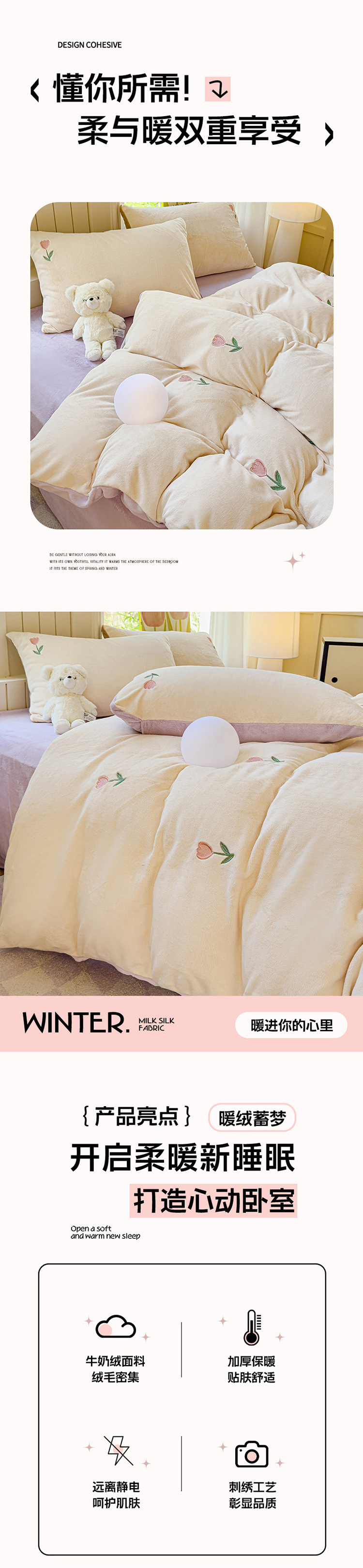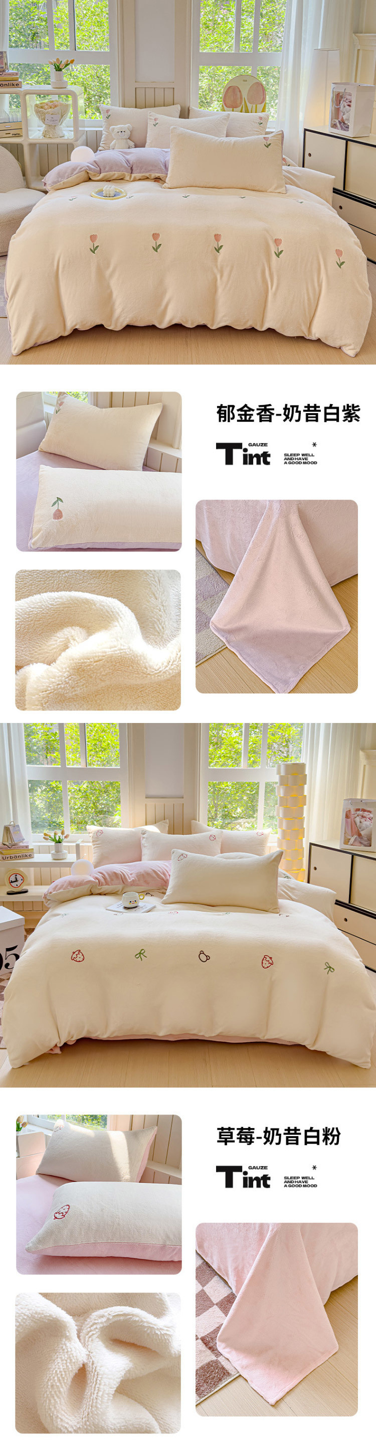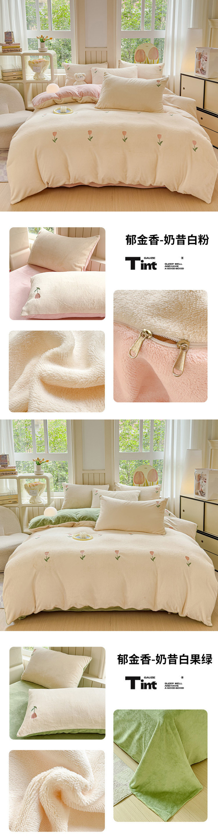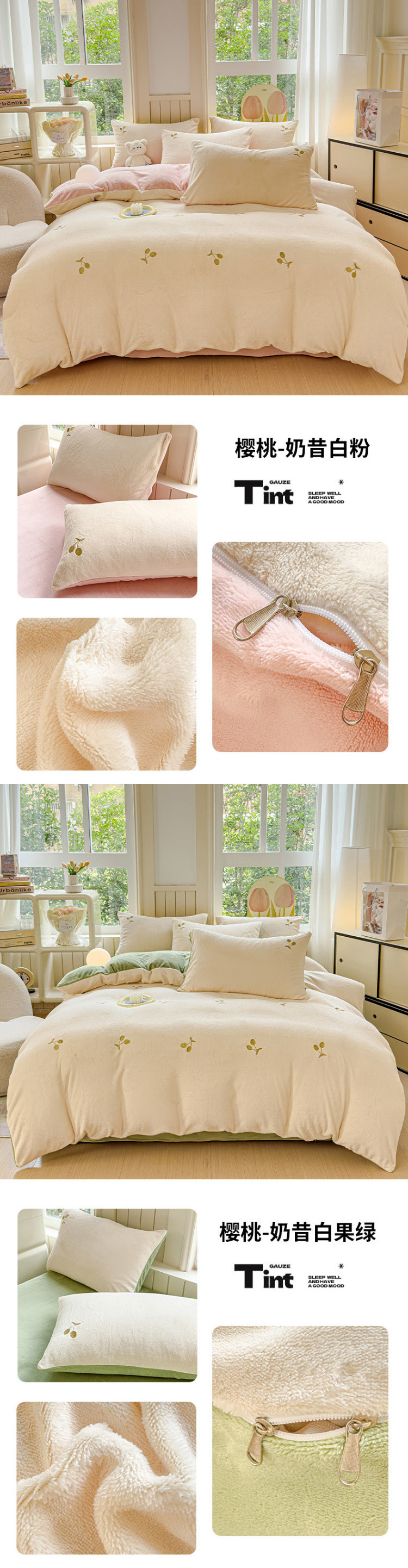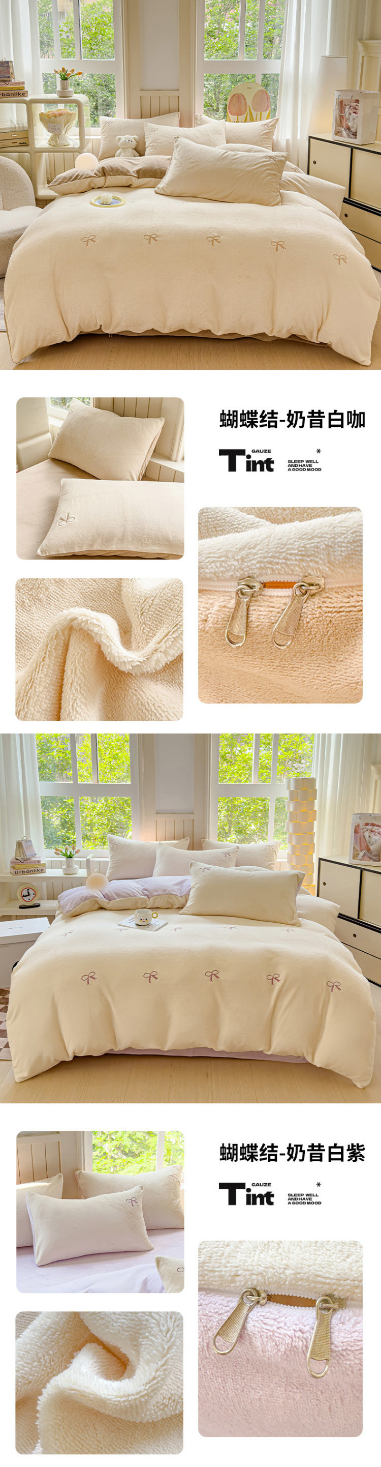 클래스 A 밀크 벨벳 침대 4 피스 세트 가을과 겨울 2024 새로운 산호 벨벳 플란넬 퀼트 커버 시트 3 피스 세트스토어 가기