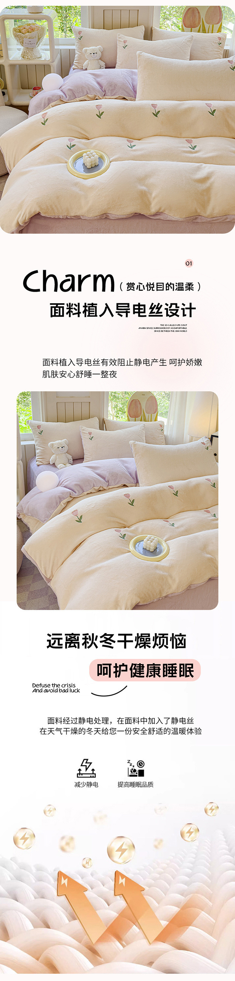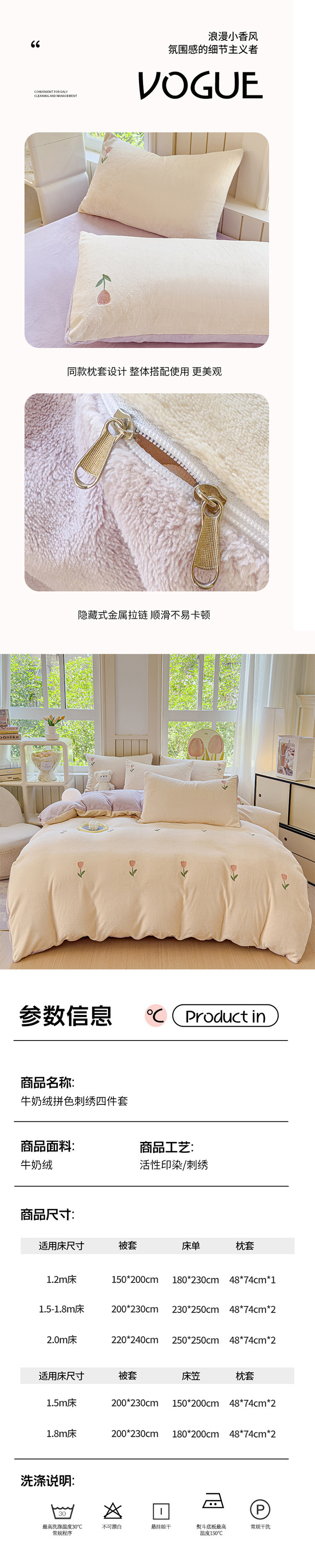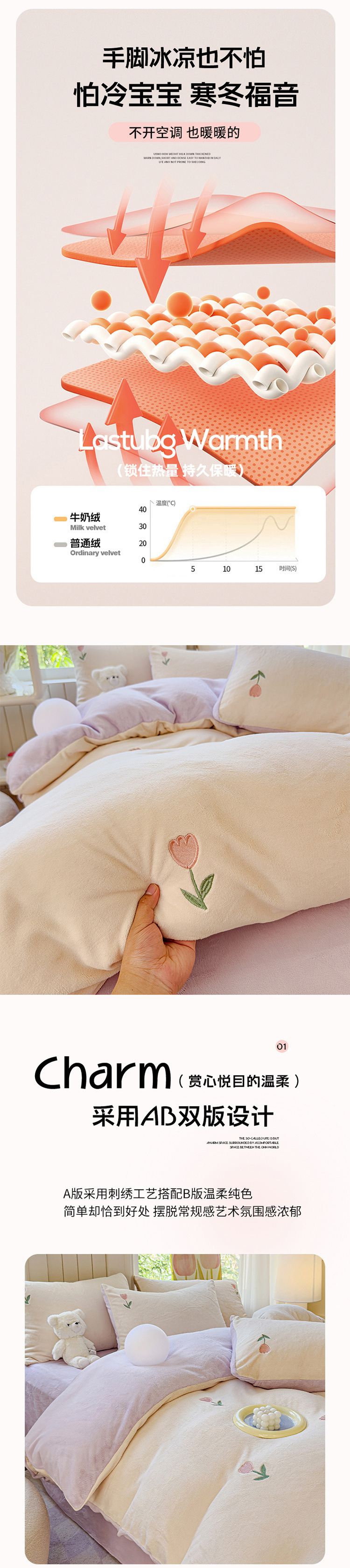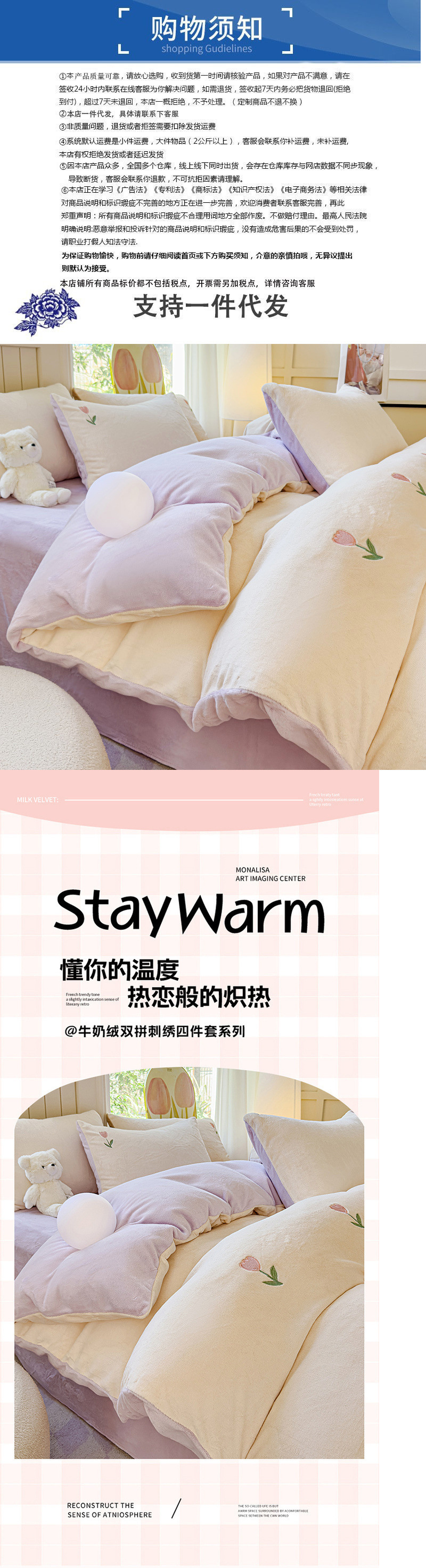 클래스 A 밀크 벨벳 침대 4 피스 세트 가을과 겨울 2024 새로운 산호 벨벳 플란넬 퀼트 커버 시트 3 피스 세트스토어 가기