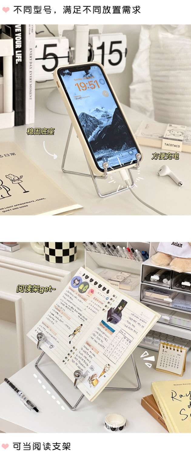Ins 스타일 금속 태블릿 스탠드 휴대 전화 데스크톱 게으른 지원 스탠드 철 학습 스탠드 휴대용 독서 스탠드 1