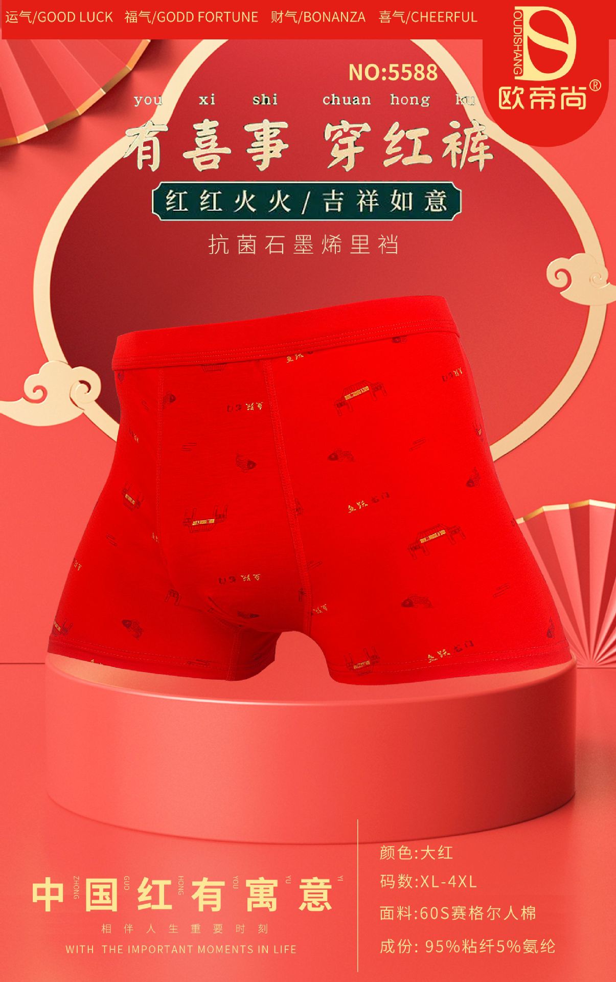 Audishang 5588 Boxer Cotton Fiber Big Red 항균 가방 루트 남성 복서 팬티