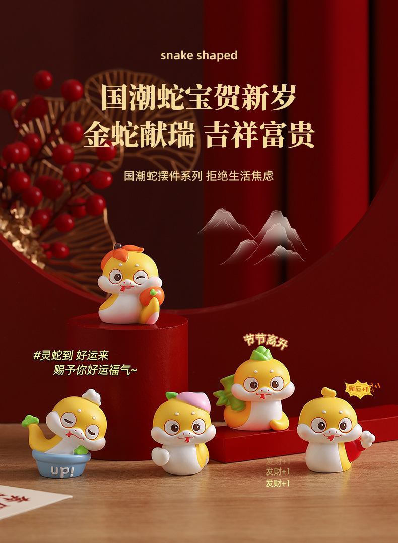 创意新年喜庆蛇年桌面树脂小摆件可爱生肖龙生日礼物摆件儿童玩具