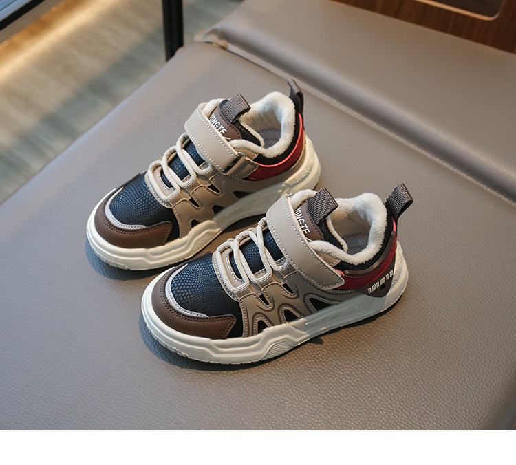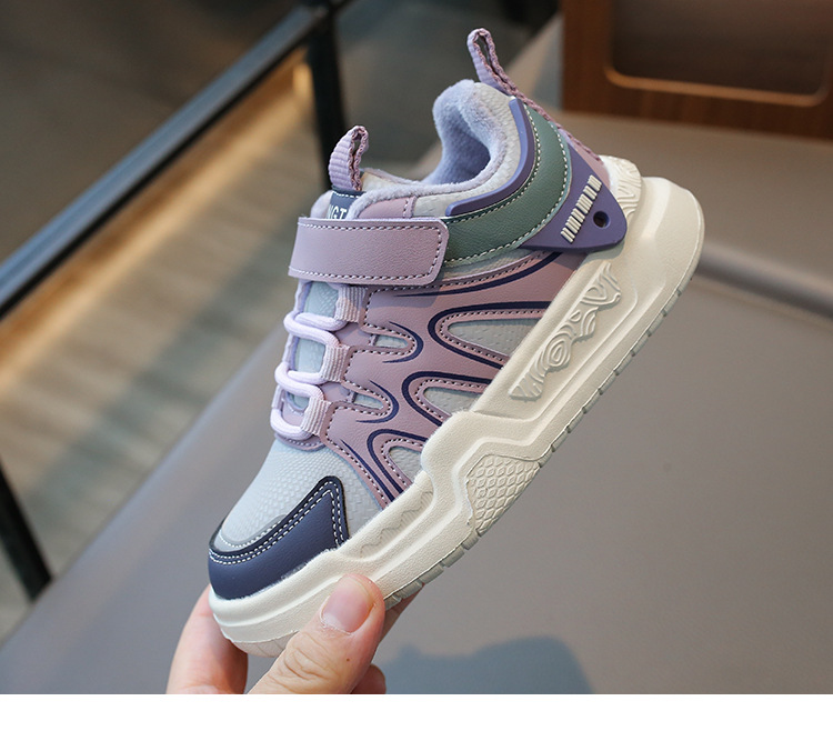 여자 코튼 신발 겨울 기모 2024 새로운 어린이 캐주얼 보드 신발 소년 벨크로 두면 따뜻한 운동화