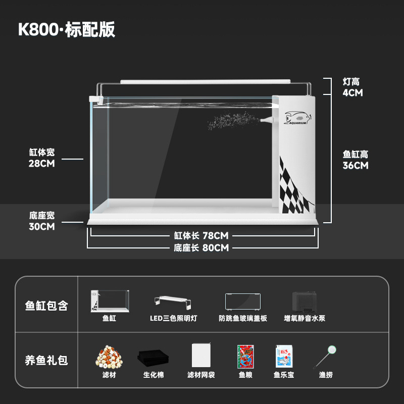 물고기 탱크 수족관 거실 작은 슈퍼 화이트 유리 사무실 테이블 직사각형 가정용 물없는 생태 금붕어 탱크
