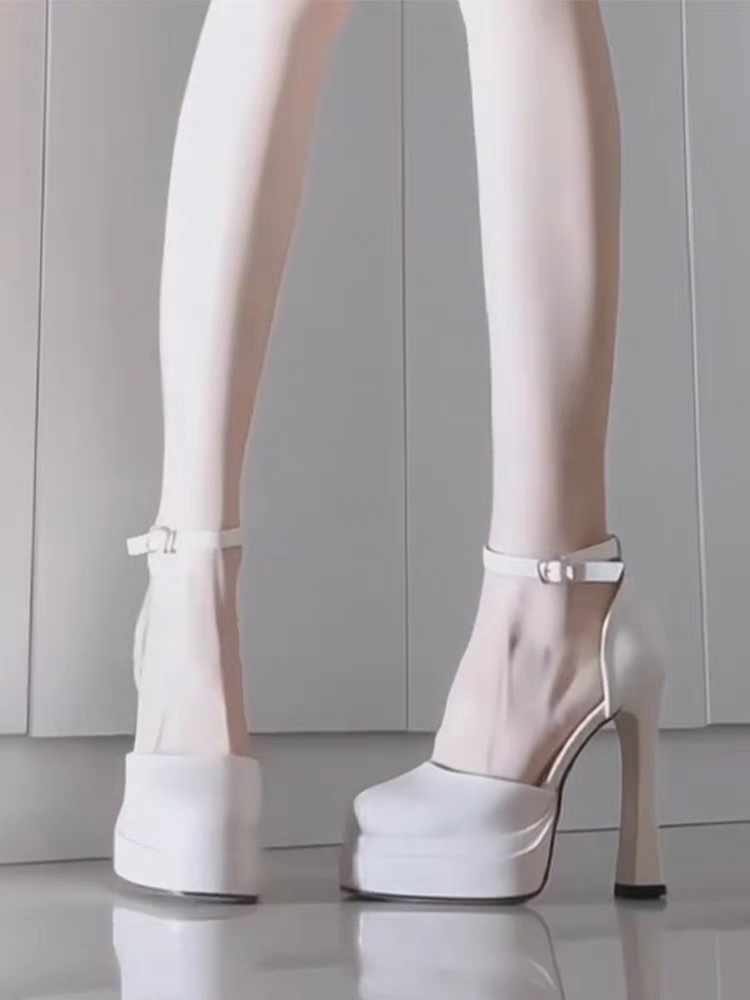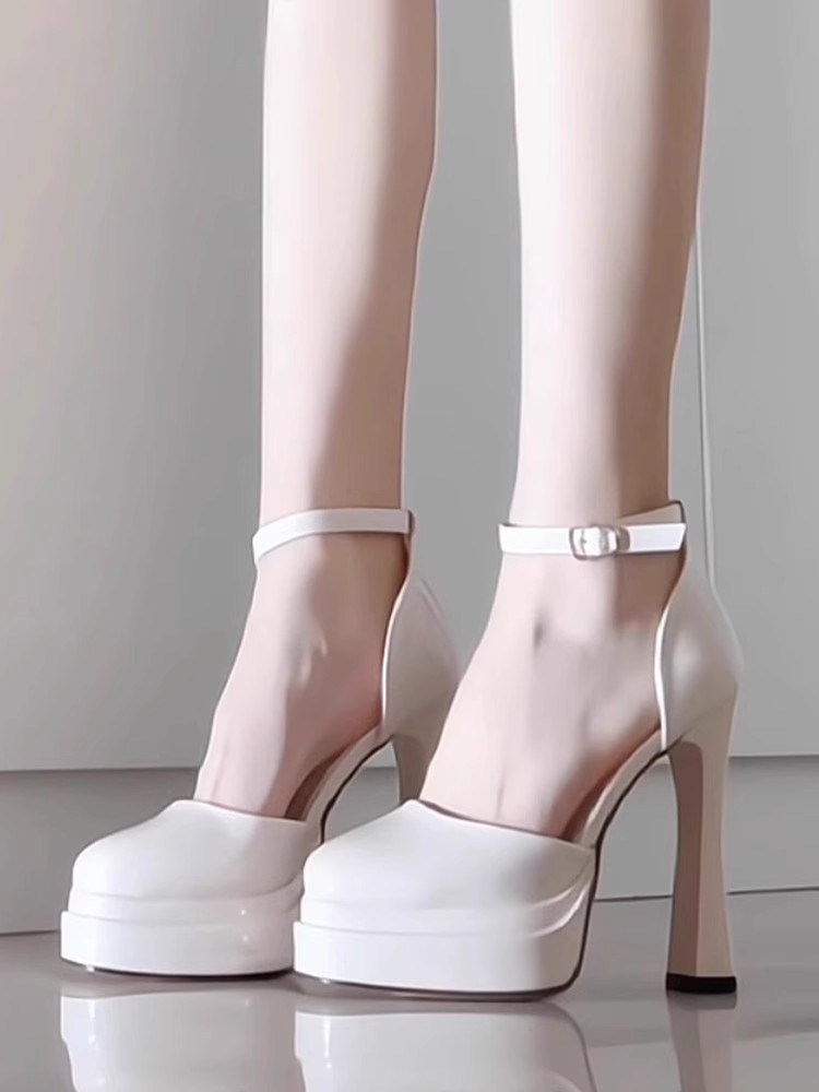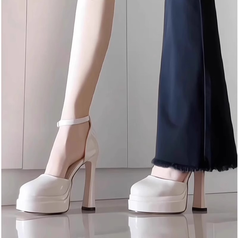 두꺼운 힐 플랫폼 연회 신발 메리 제인 신발 슈퍼 하이힐 여성 여름 및 가을 작은 남성을위한 새로운 웨딩 원피스 웨딩 신발스토어 가기