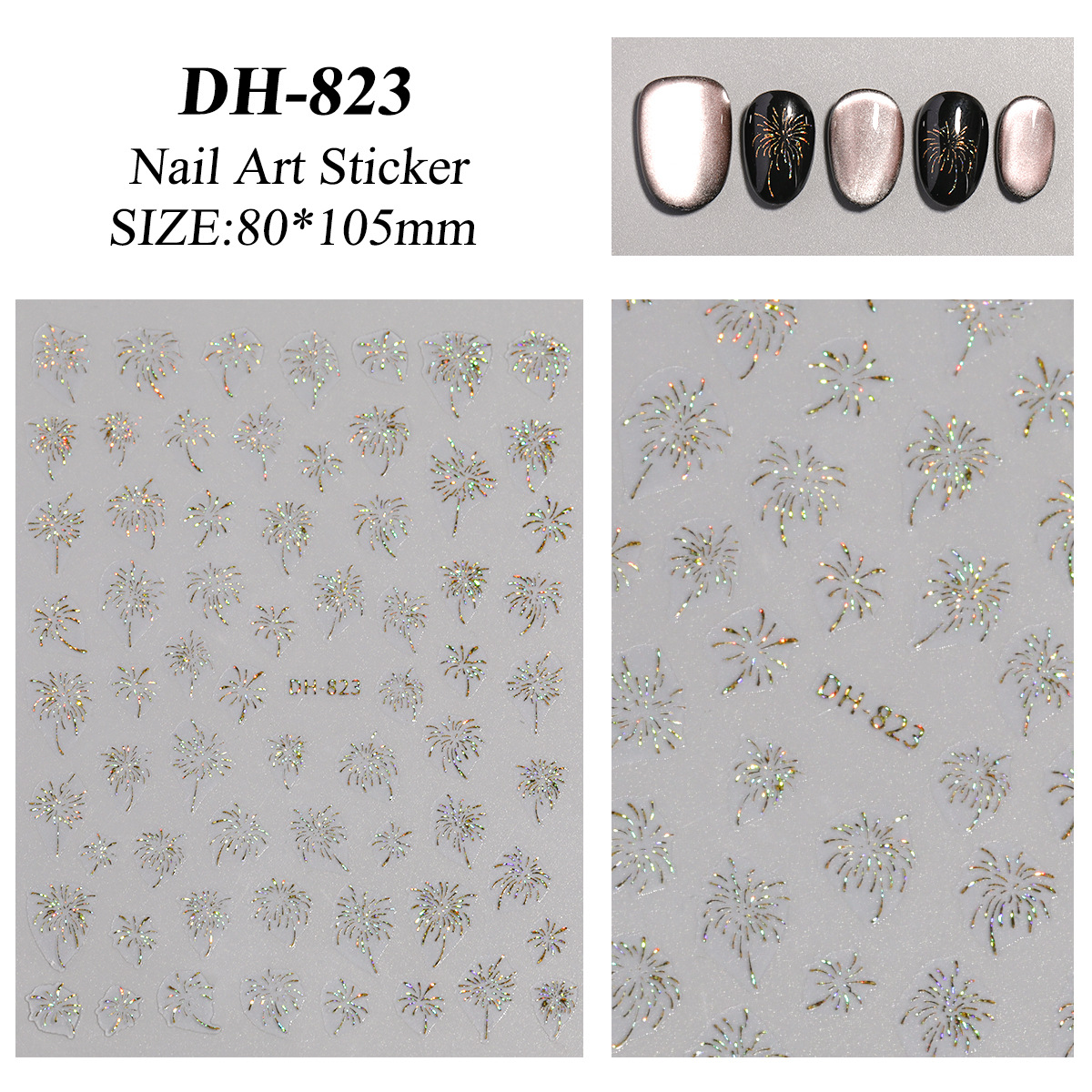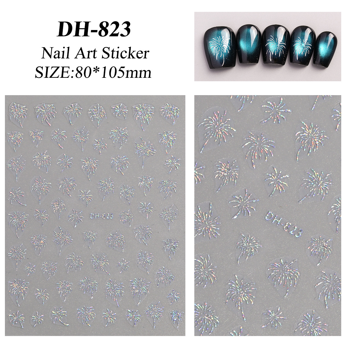 화려한 불꽃 놀이 네일 스티커 3D 입체 흑백 레이저 브론 징 실버 불꽃 놀이 네일 아트 스티커 장식 DH 스타일스토어 가기