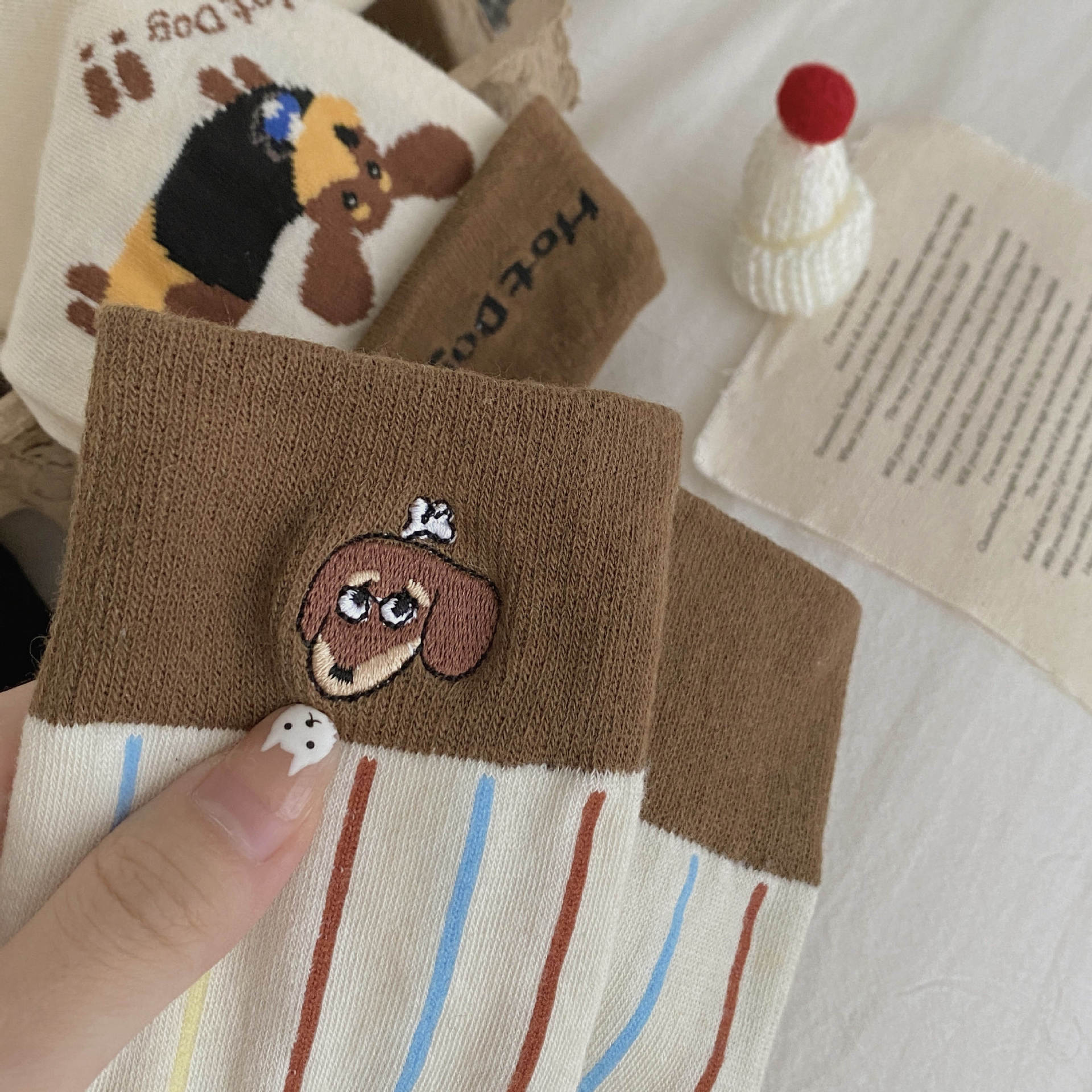 한국 동대문 양말 여성 Ins 닥스 훈트 개 양말 귀여운 만화 여성 미드 튜브 양말 어린이 팩 여성스토어 가기