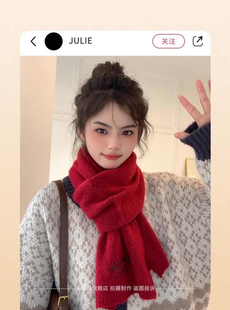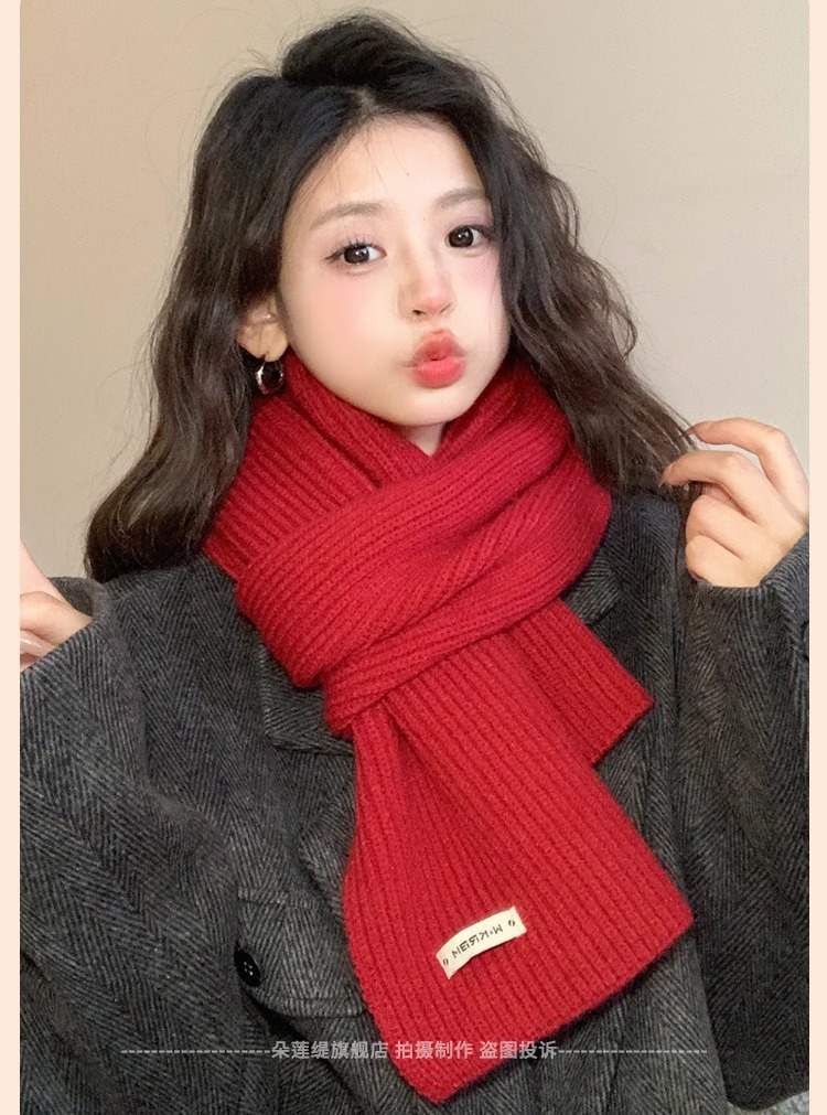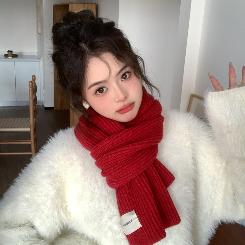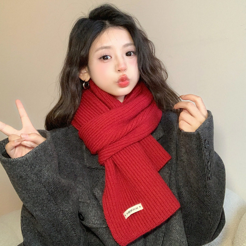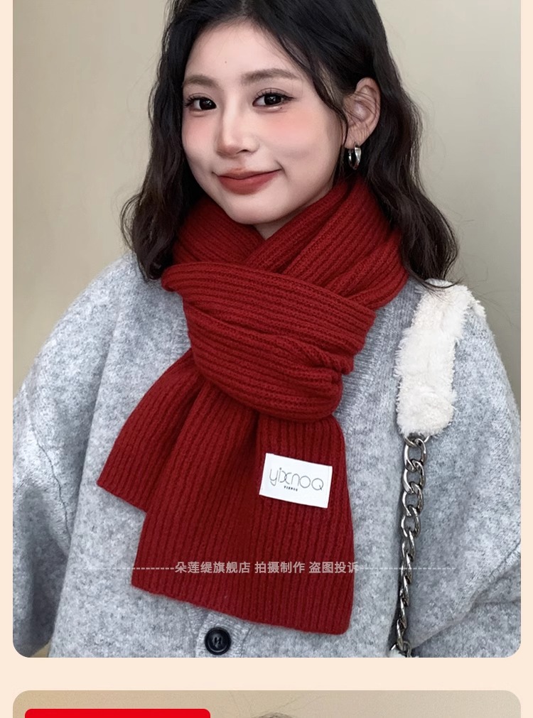 붉은 스카프 여성의 겨울 2024 새로운 가을과 겨울 한국 스타일 분위기 고급 크리스마스 새해 따뜻한 두꺼운 스카프스토어 가기