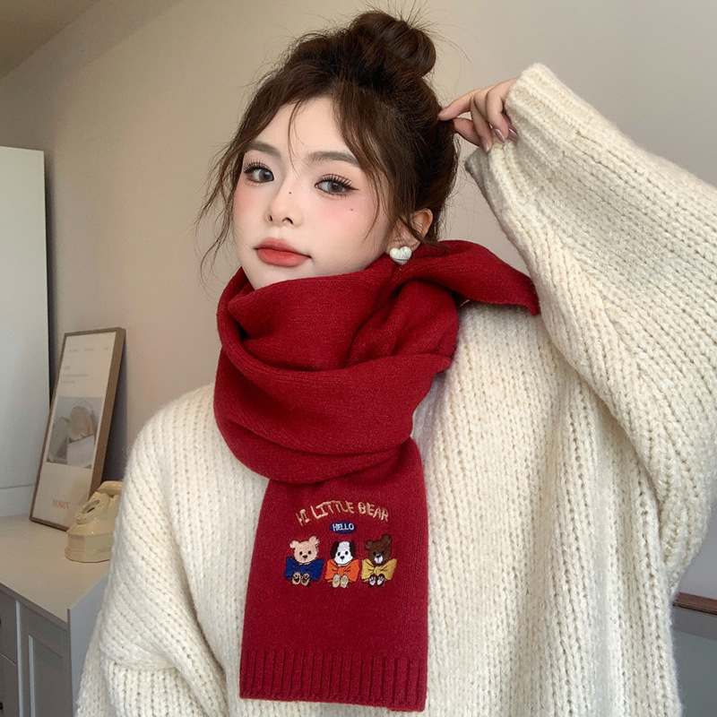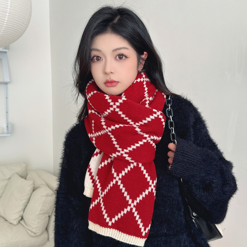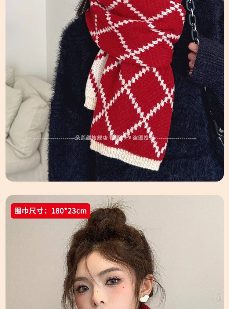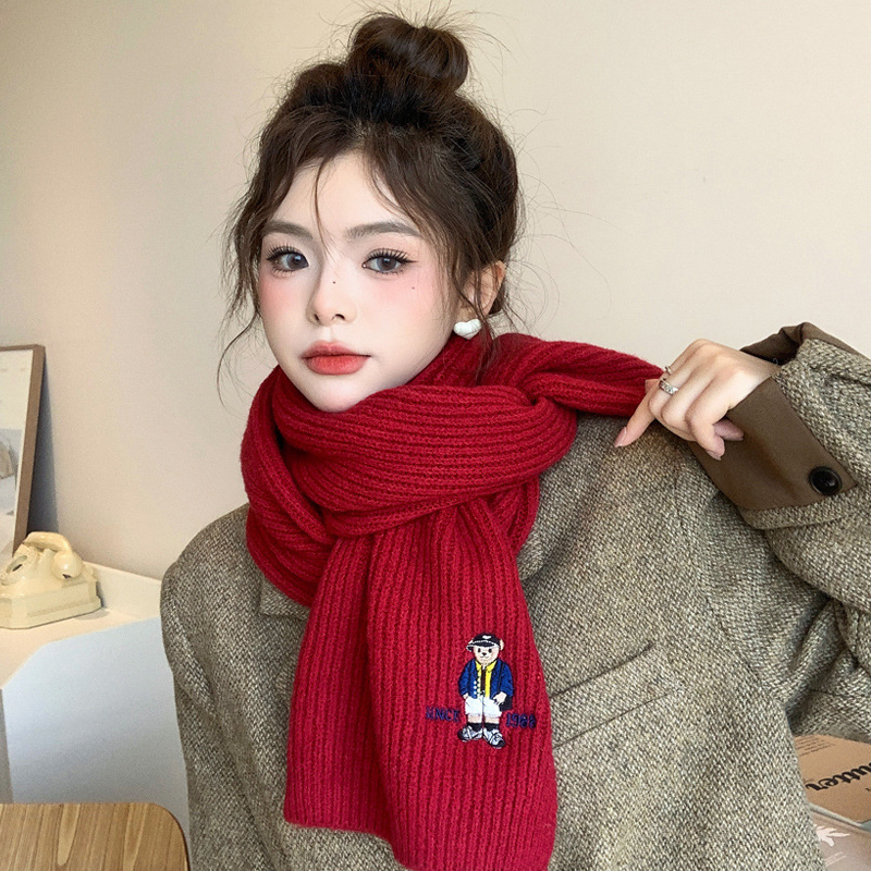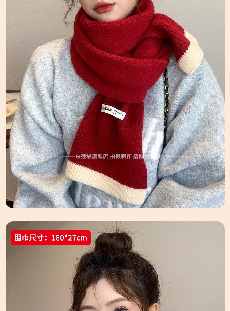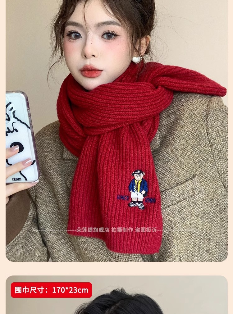붉은 스카프 여성의 겨울 2024 새로운 가을과 겨울 한국 스타일 분위기 고급 크리스마스 새해 따뜻한 두꺼운 스카프스토어 가기