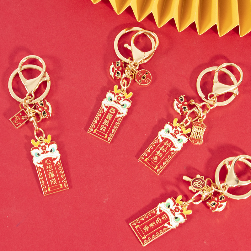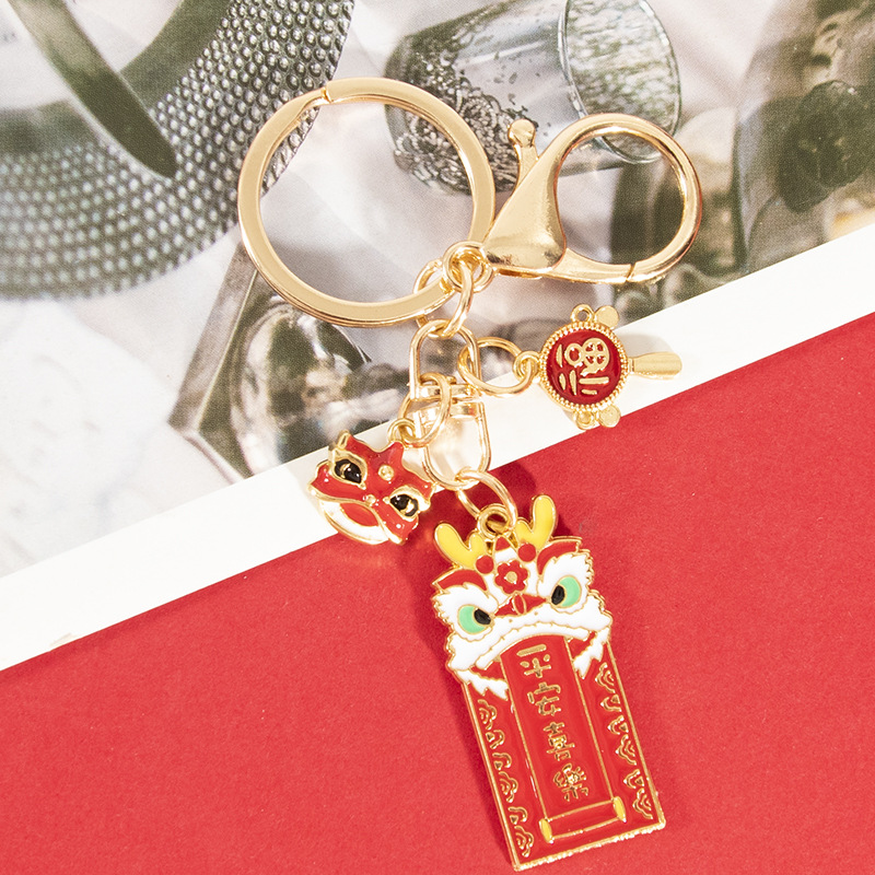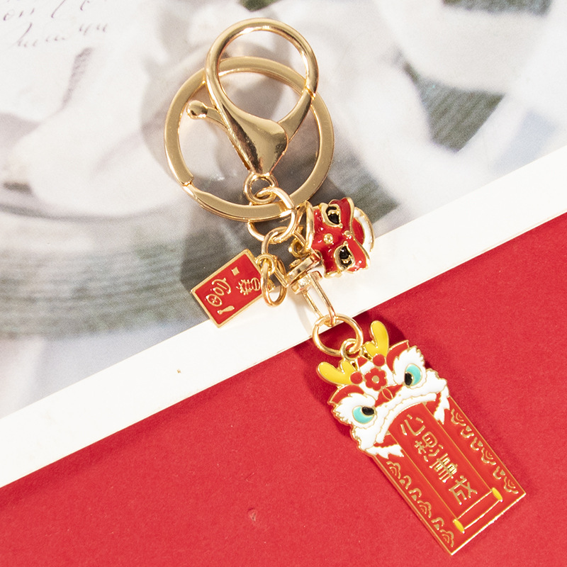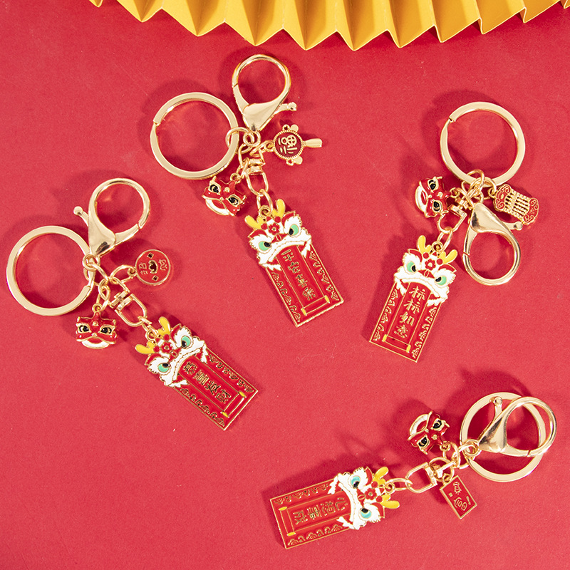 새해 기름 떨어지는 합금 감 Ruyi 사자 열쇠 고리 반지 작은 펜던트 장식품 봄 축제 작은 선물 선물 도매스토어 가기