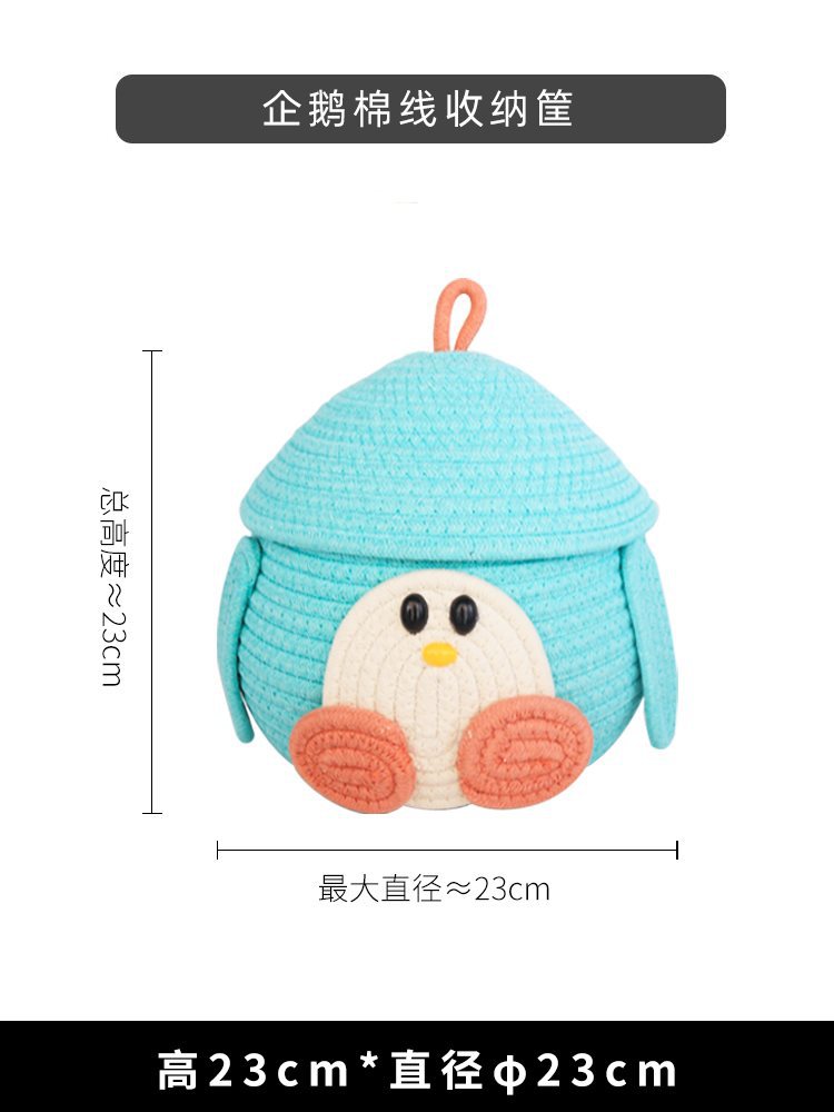 • 뚜껑이 있는 녹색 펭귄 원형 바구니
