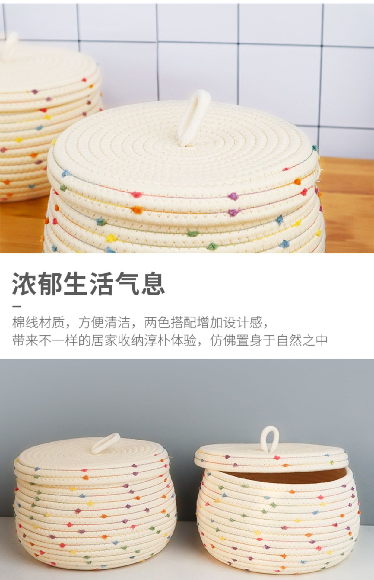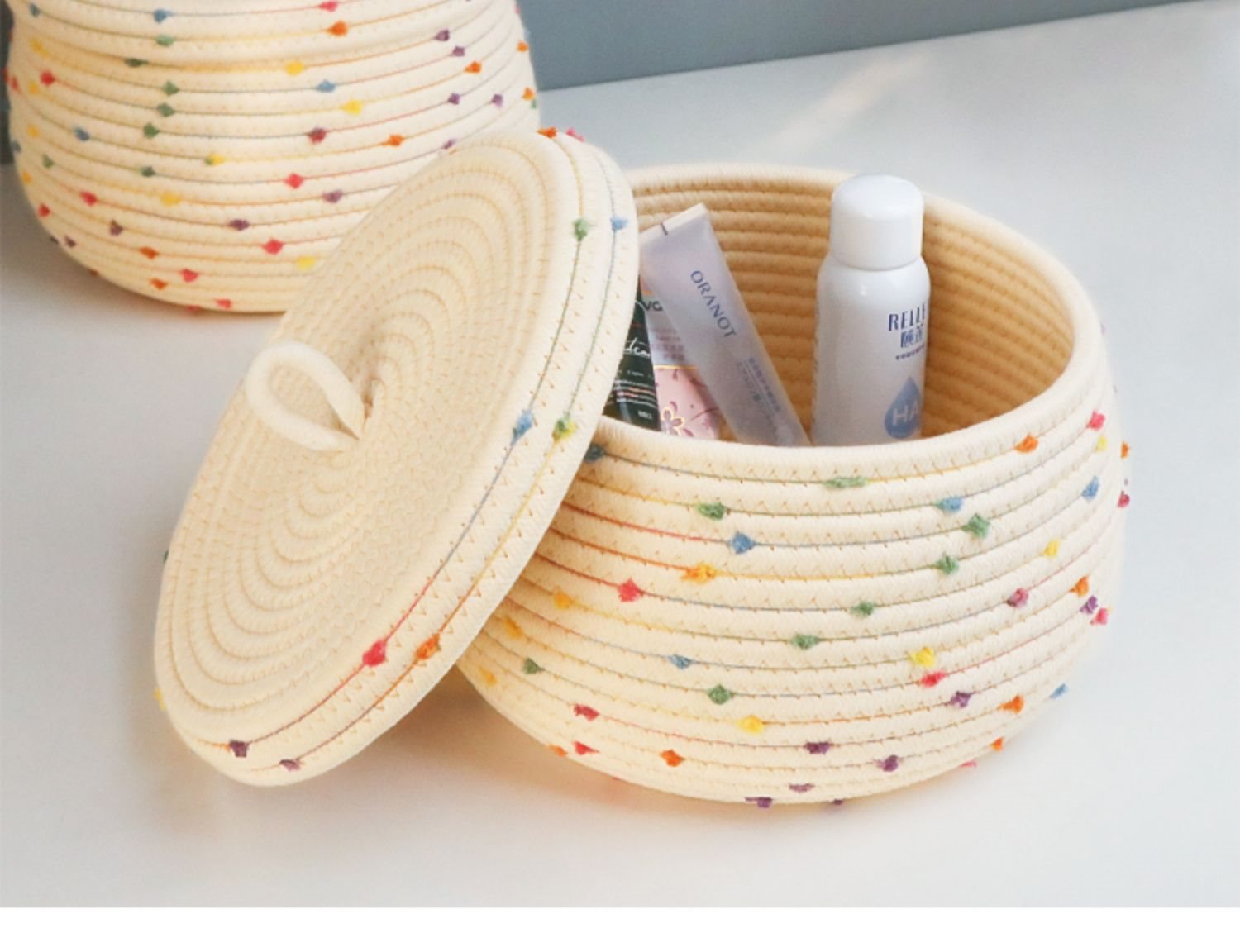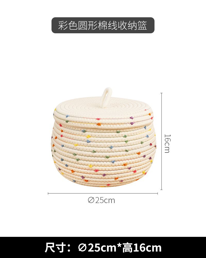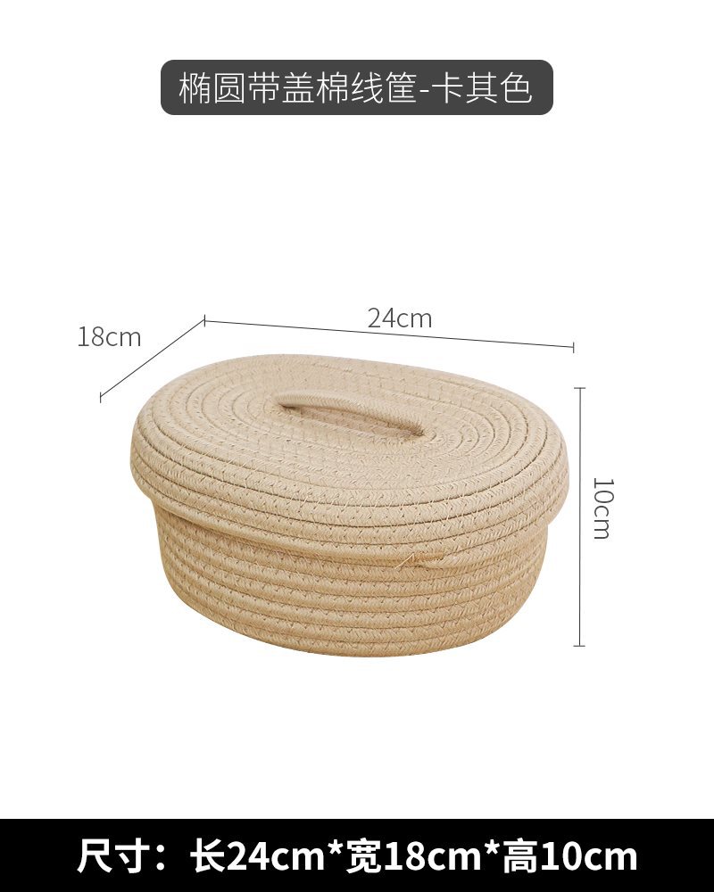 • 뚜껑이 있는 베이지색 실 원형 바구니