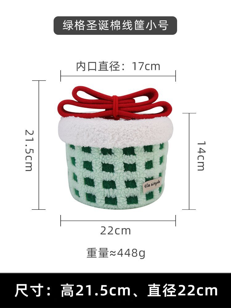 • 녹색 격자 크리스마스 선물 상자 면사 바구니 대형