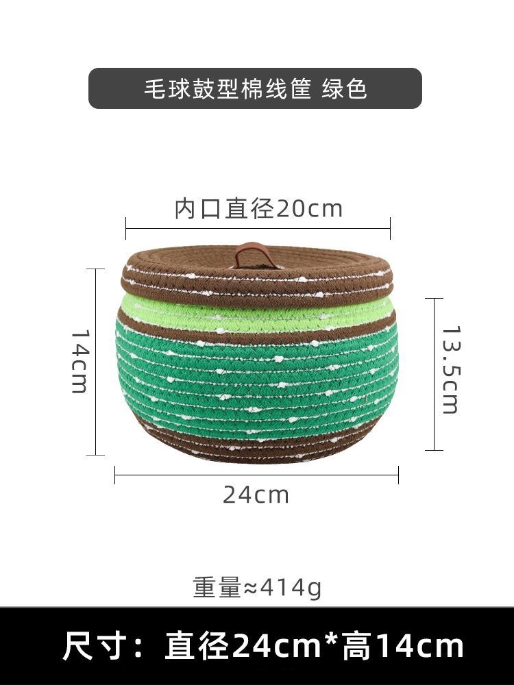 • 녹색 면 로프 흰색 모피 공 드럼 바구니