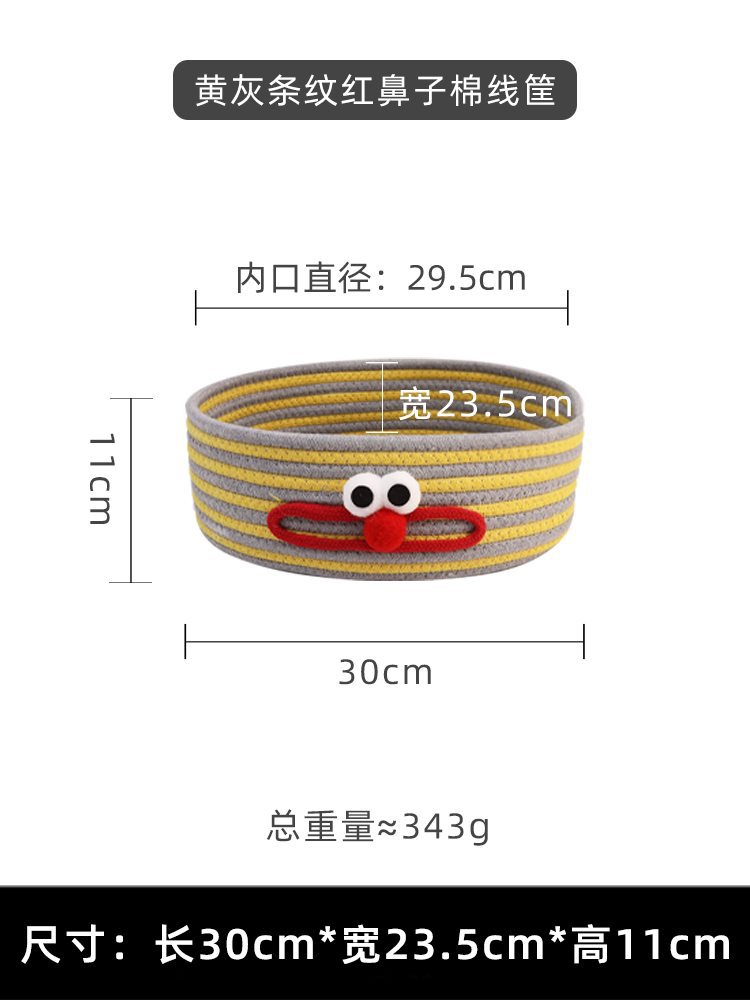 • 노란색 회색 줄무늬 빨간색 코 면 바구니