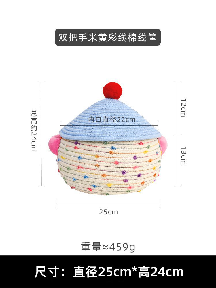 • 더블 핸들 베이지색 실 면 바구니