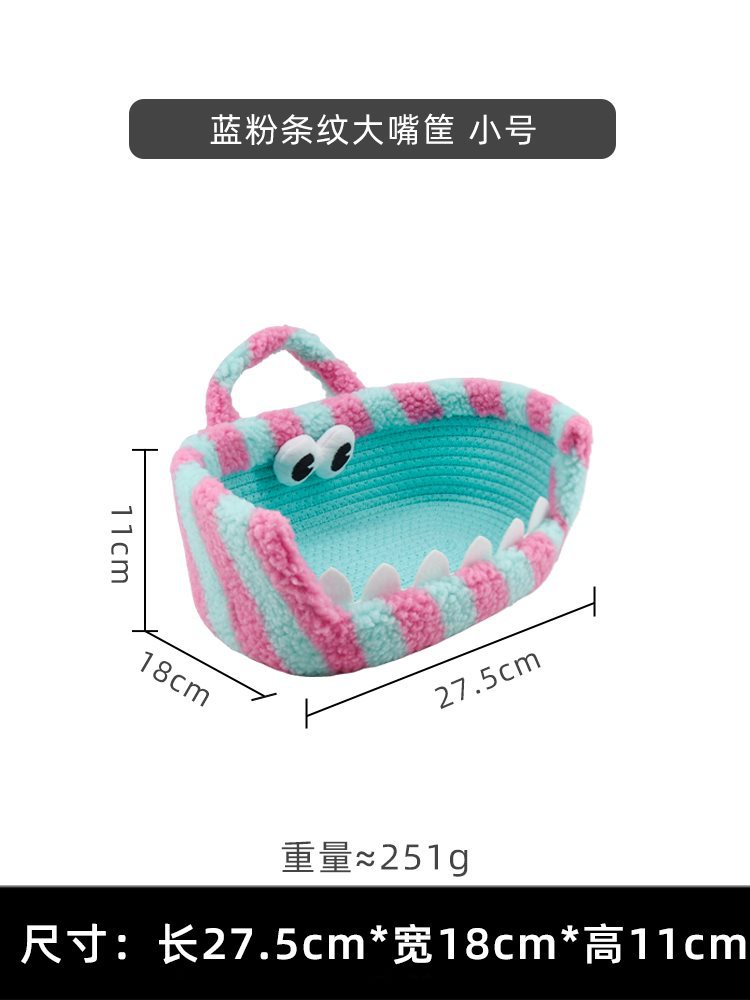 • 파란색과 분홍색 줄무늬 큰 입 바구니 작은 크기
